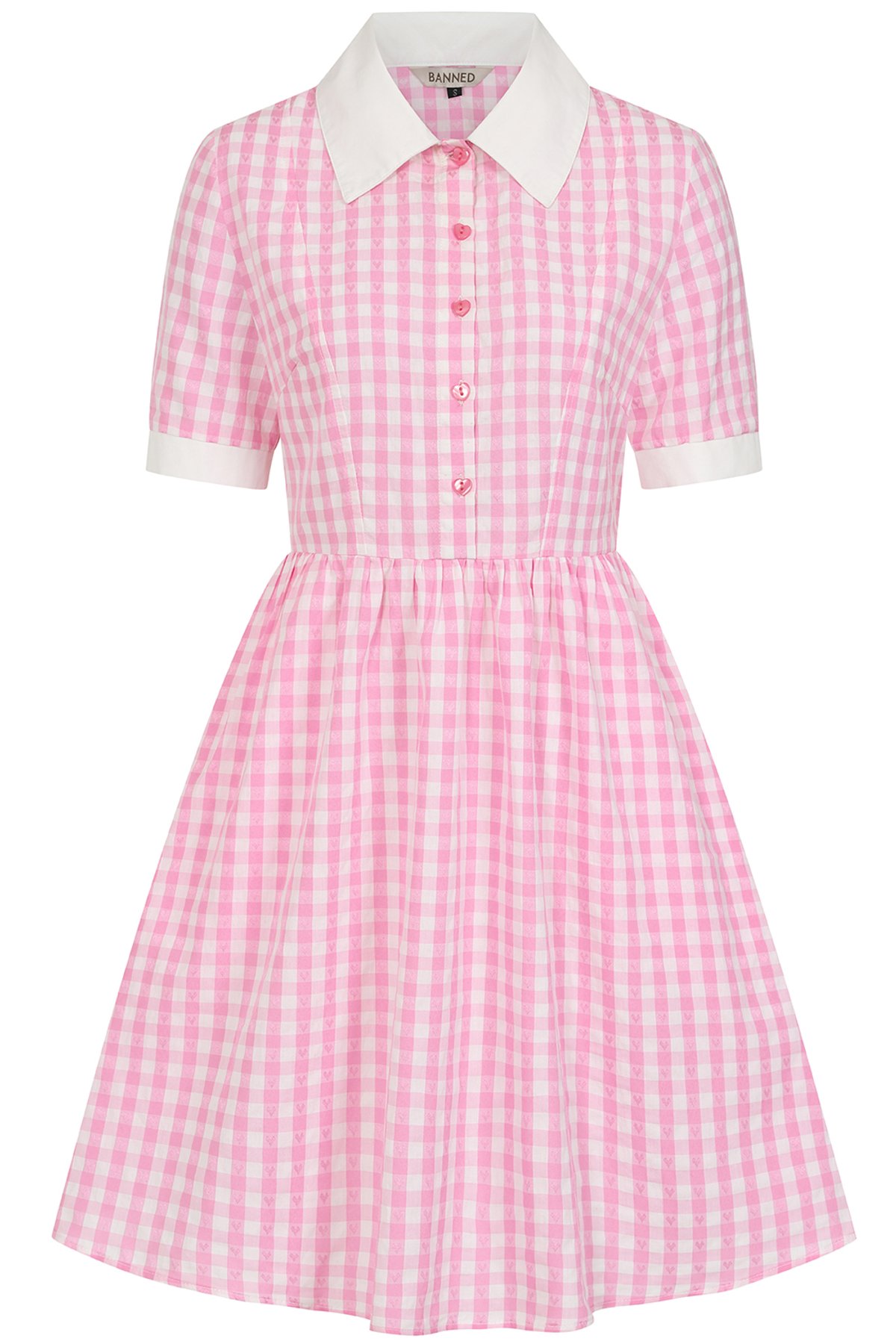 Unleash your inner vintage vixen with our Pink YUNA GINGHAM DRESS—a true purrfect blend of retro charm and playful sophistication. With its crisp white Peter Pan collar, charming pink heart-shaped buttons, and a flared gathered skirt, this piece is a delightful ode to bygone eras with a modern twist. Its cheerful gingham print and flirty silhouette will have you looking claws-down gorgeous, whether you're sashaying through the city streets or twirling at a garden fête. Soft, comfy, and endlessly versatile, it’s the kind of dress that invites compliments and maybe a few mischievous glances.