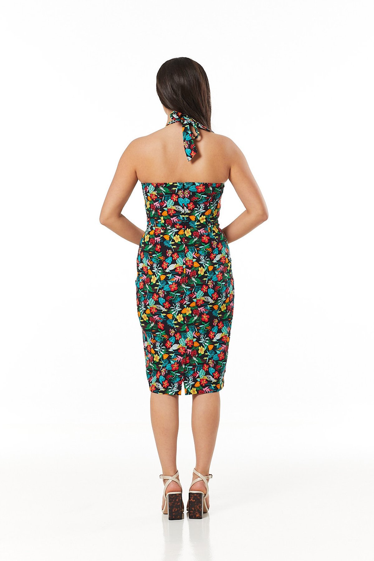 Unleash your inner vintage vixen with the Pippa Dress—where timeless floral charm meets modern sass. Crafted from a breezy lightweight cotton, this beauty keeps you cool and effortlessly chic all day long. The halter neck with a sweethearted scoop adds a dash of retro glamour, while the playful bow at the bust gives just the right amount of flirt. Fanning from a cinched waist into a fitted pencil skirt, knife pleats create a stunning silhouette that’s claw-down gorgeous. Plus, those handy side pockets are perfect for stashing your secret charms or a quick lipstick touch-up. Whether you’re stepping out for a garden soirée or dancing the night away, this dress promises to make every moment feel just right.