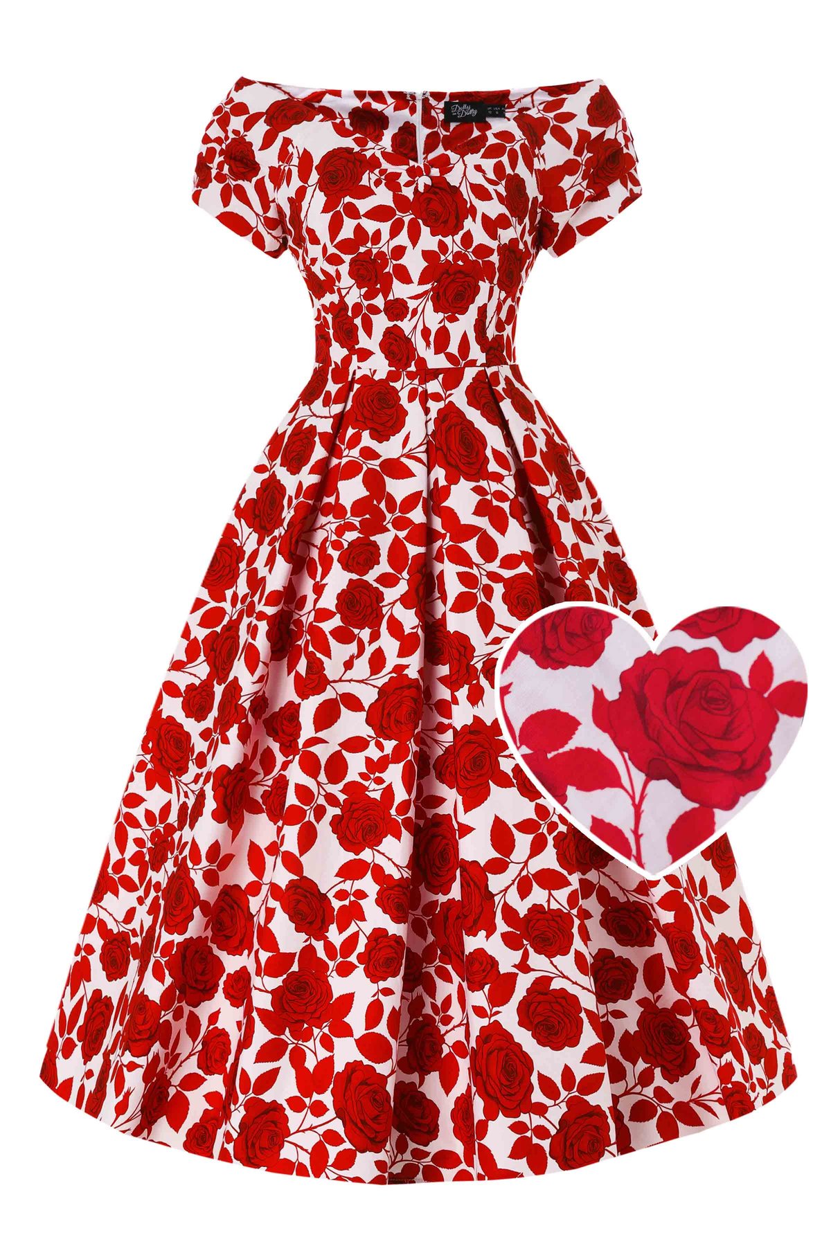 Step into a garden of vintage charm with the Lily White Red Shadow Rose Off Shoulder Dress — where classic elegance gets a playful, modern twist. The crisp white backdrop is draped with delicate red rose prints, creating a romantic yet lively vibe that’s perfect for turning heads. The sweetheart neckline and fitted waist flatter your figure, while the flowing pleated skirt invites a twirl or two. Crafted from a comfy cotton-elastane blend, this dress offers both style and ease, ensuring you stay radiant from day to night. Whether you're out for brunch, dancing under the stars, or strolling through a sunlit park, this piece promises to be your go-to for timeless, purrfect sophistication.