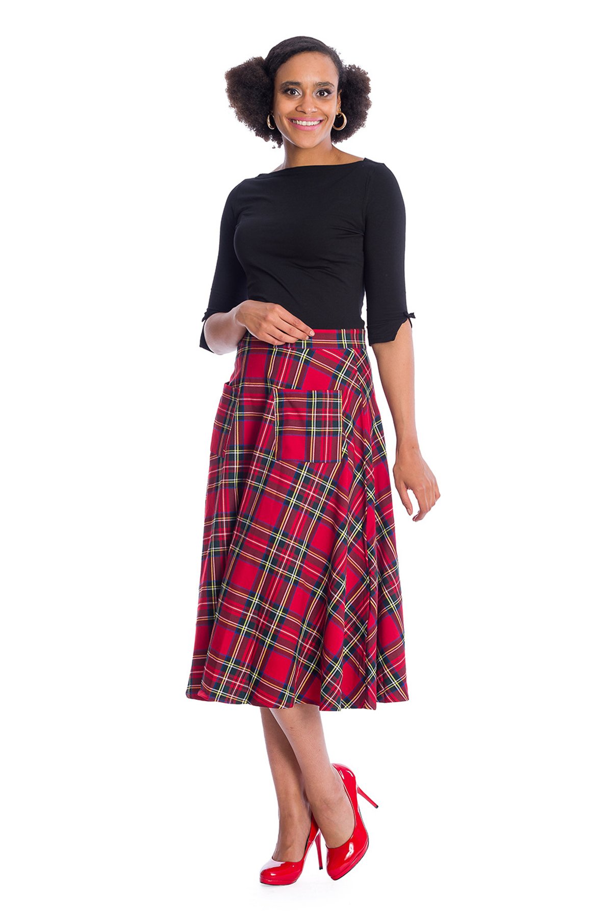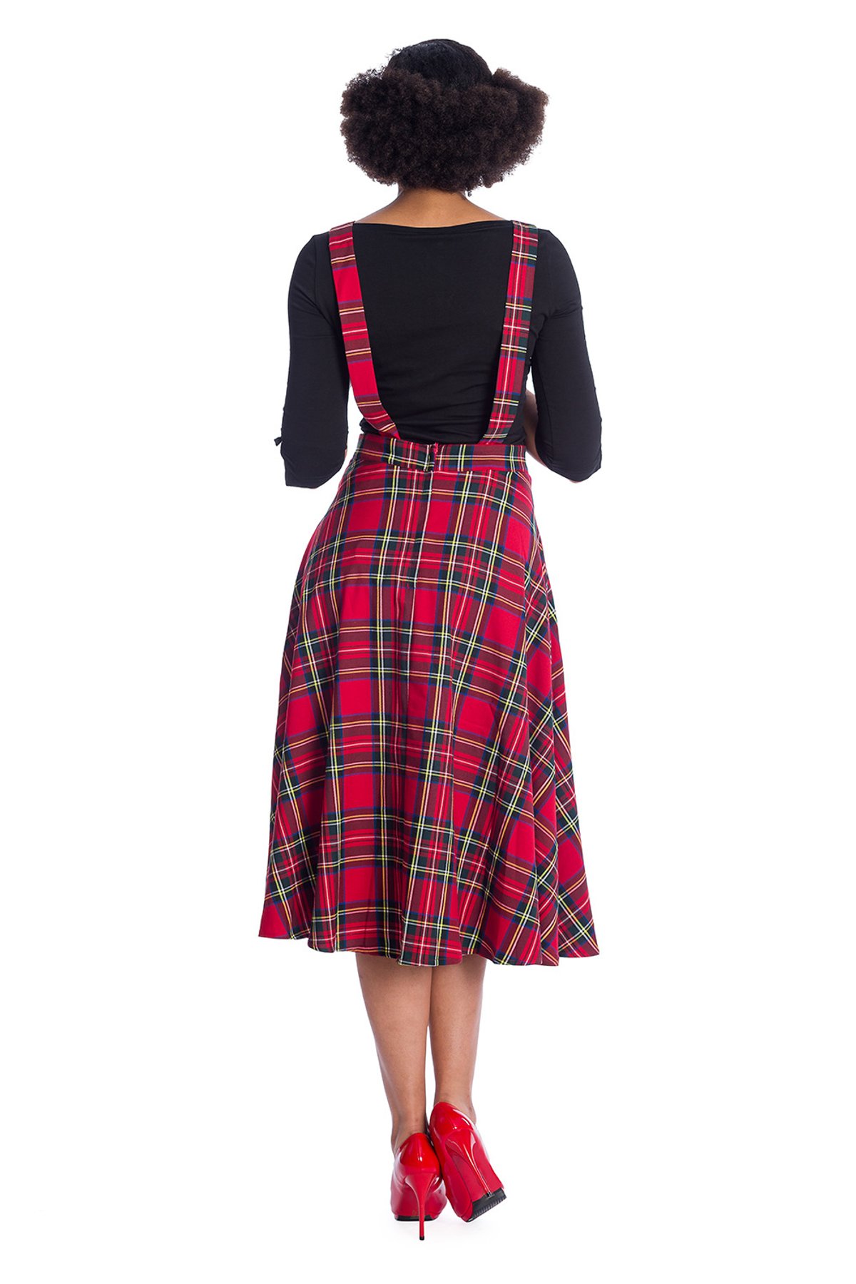 Unleash your inner vintage vixen with this purrfectly playful red tartan pinafore dress—an irresistibly charming piece that’s as chic as it is mischievous. Its swing silhouette and bold pattern make for a look that’s both nostalgic and totally modern, giving you that claws-down gorgeous vibe with every twirl. The classic tartan print is a timeless nod to retro glam, but it’s the flirty cut and lively silhouette that truly steal the scene. Crafted from a comfy, stretchy blend, this dress moves with you whether you're strutting down the street or enjoying a cozy café date. It’s a versatile wardrobe staple that’s ready to make you the star of any occasion.