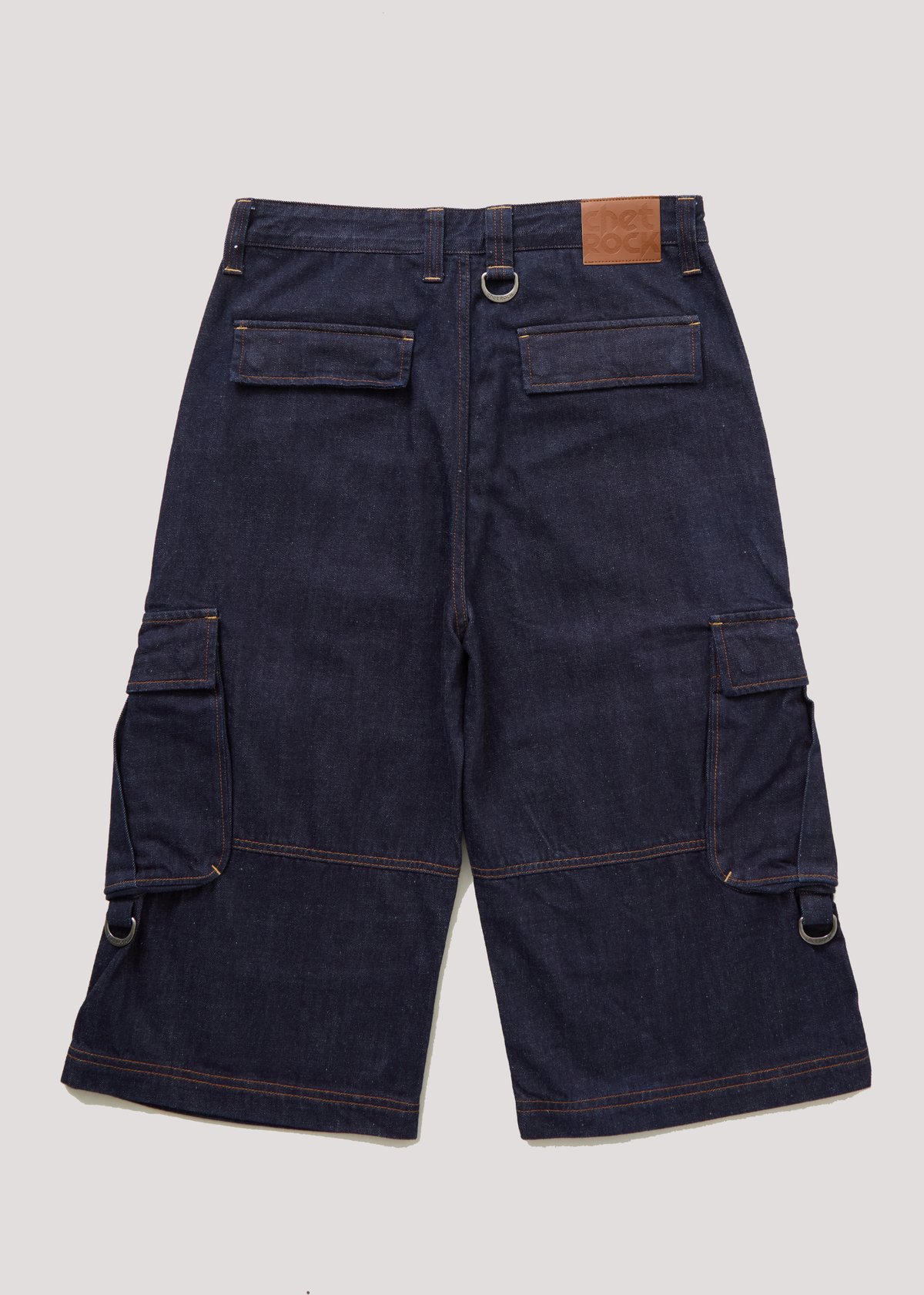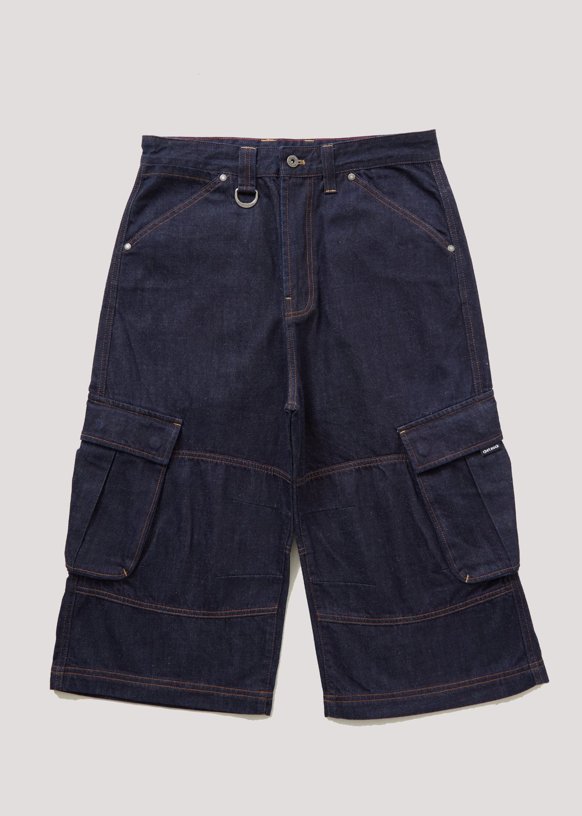 The dark blue hue, accented by bursts of vibrant orange stitching, adds a modern edge to the timeless denim look. And let’s not forget the baggy, workwear-style cut that screams nonchalant swag! Plus, these jorts boast a bounty of pocket space. Two roomy side pockets, handy cargo pockets, and practical back-flap pockets – all to keep your essentials close and your hands free 🙌.