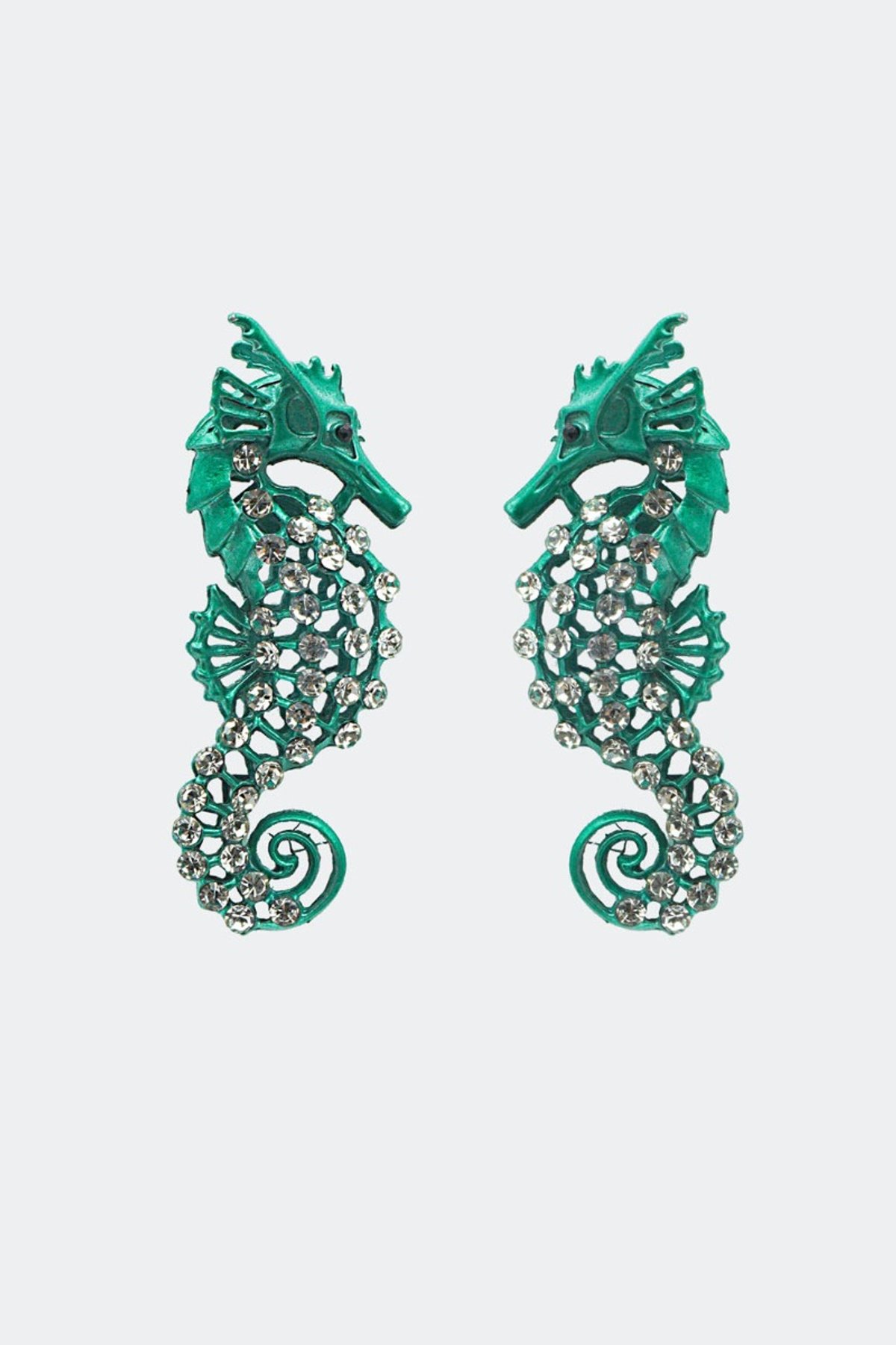 Get ready to make a splash with our Rhinestone Seahorse Earrings—an enchanting blend of oceanic charm and sparkling allure. These earrings feature a lush green hue that captures the vibrant spirit of the sea, complemented by shimmering silver accents that add a touch of elegance. The rhinestones twinkle with every movement, ensuring your look stays dazzling from day to night. Designed for those who appreciate a bit of whimsy with a sophisticated edge, these earrings are a purrfect way to elevate any ensemble and channel your inner aquatic muse.