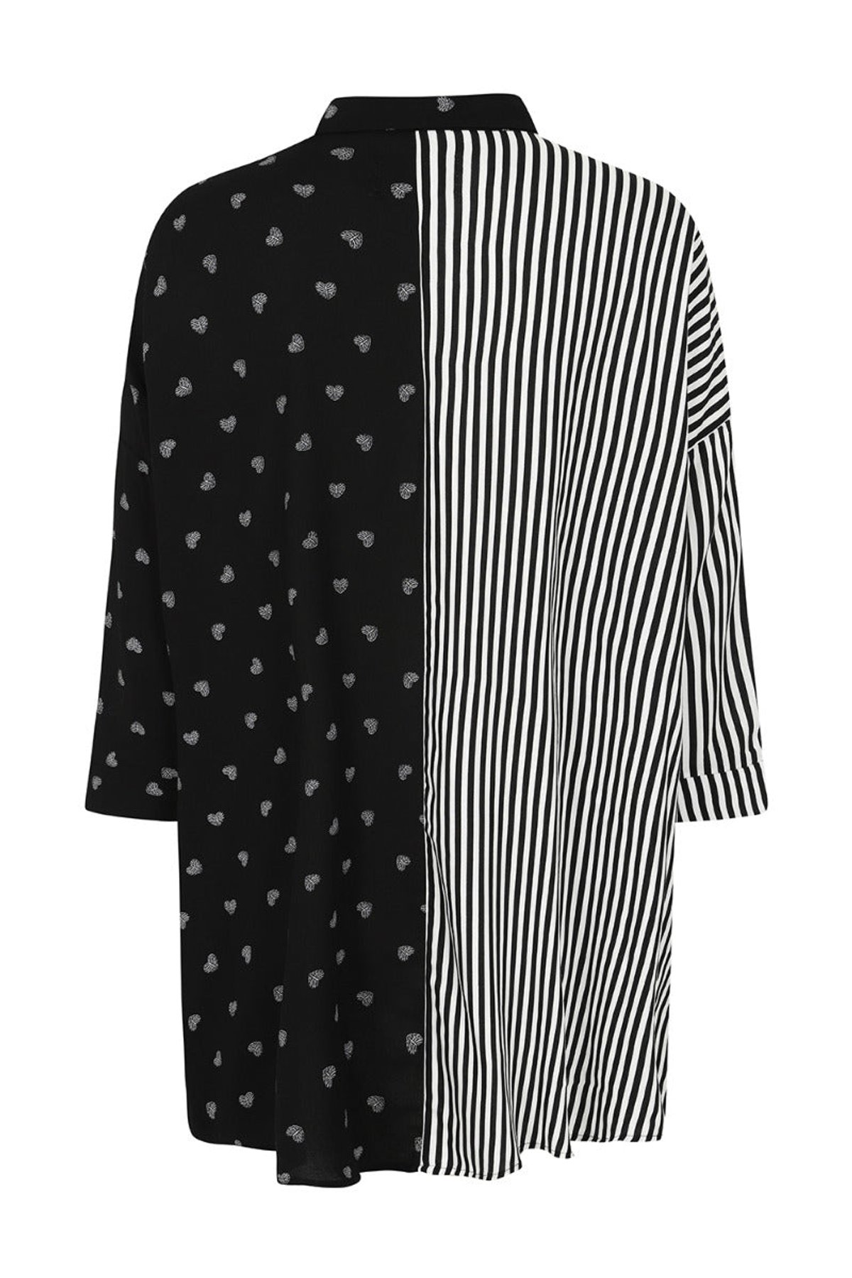 Unleash your inner feline fashionista with our Ribcage Oversized Shirt — a purrfect mix of playful edge and laid-back chic. Its striking half-striped, half-heart design is a visual treat, while the black-and-white palette keeps things effortlessly sophisticated. The loose, relaxed fit with 3/4-length sleeves makes it an ideal choice for those who love comfort without sacrificing style. Button-up cuffs add a touch of polished flair, ensuring you look as cool as you feel. Crafted from lightweight viscose, this shirt drapes beautifully, giving you that effortlessly tousled, yet intentionally chic, vibe. Whether you're feeling mischievous or mellow, this piece is versatile enough to match your mood — just be mindful of the no-stretch fabric for the perfect fit.