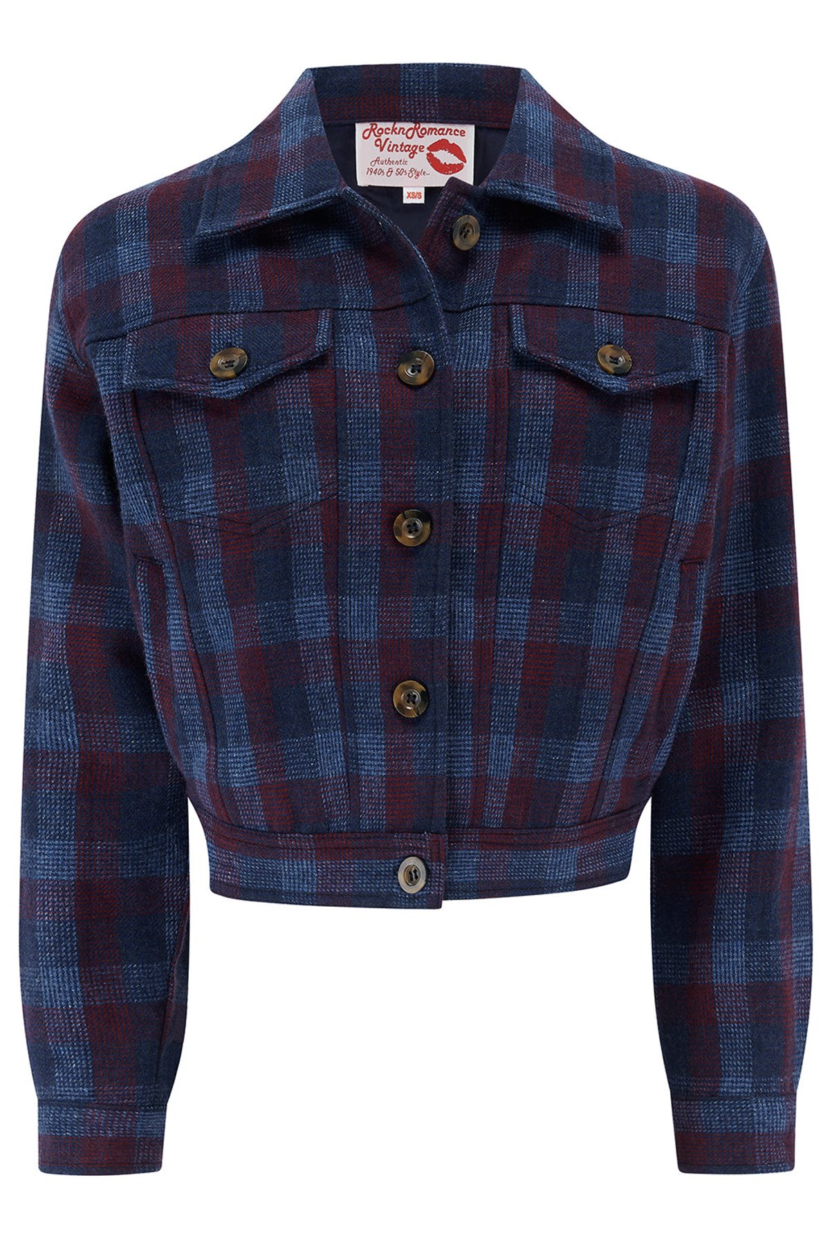 The Girl Next Door Ladies Ricky Jacket in Blue & Purple Check 100% Wool .. Rockin 1950s Style