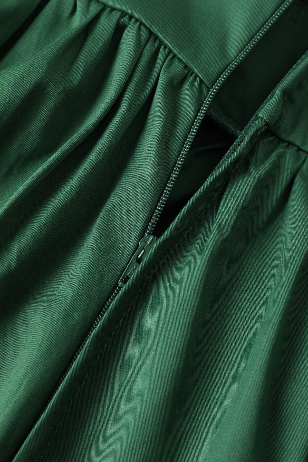 Get ready to turn heads in the Ruth Emerald Green Swing Dress, a true feline-inspired marvel! Its luscious emerald hue is purrfect for making a statement, while the vintage-inspired silhouette offers a chic, timeless vibe. The tailored bodice and flouncy, twirl-worthy skirt are designed to flatter every figure and keep you feeling fabulous from dawn till dusk. Crafted from a luxurious cotton-elastane blend, this dress combines comfort with striking style, making it a must-have for any wardrobe that’s craving a splash of retro glamour and feline finesse.