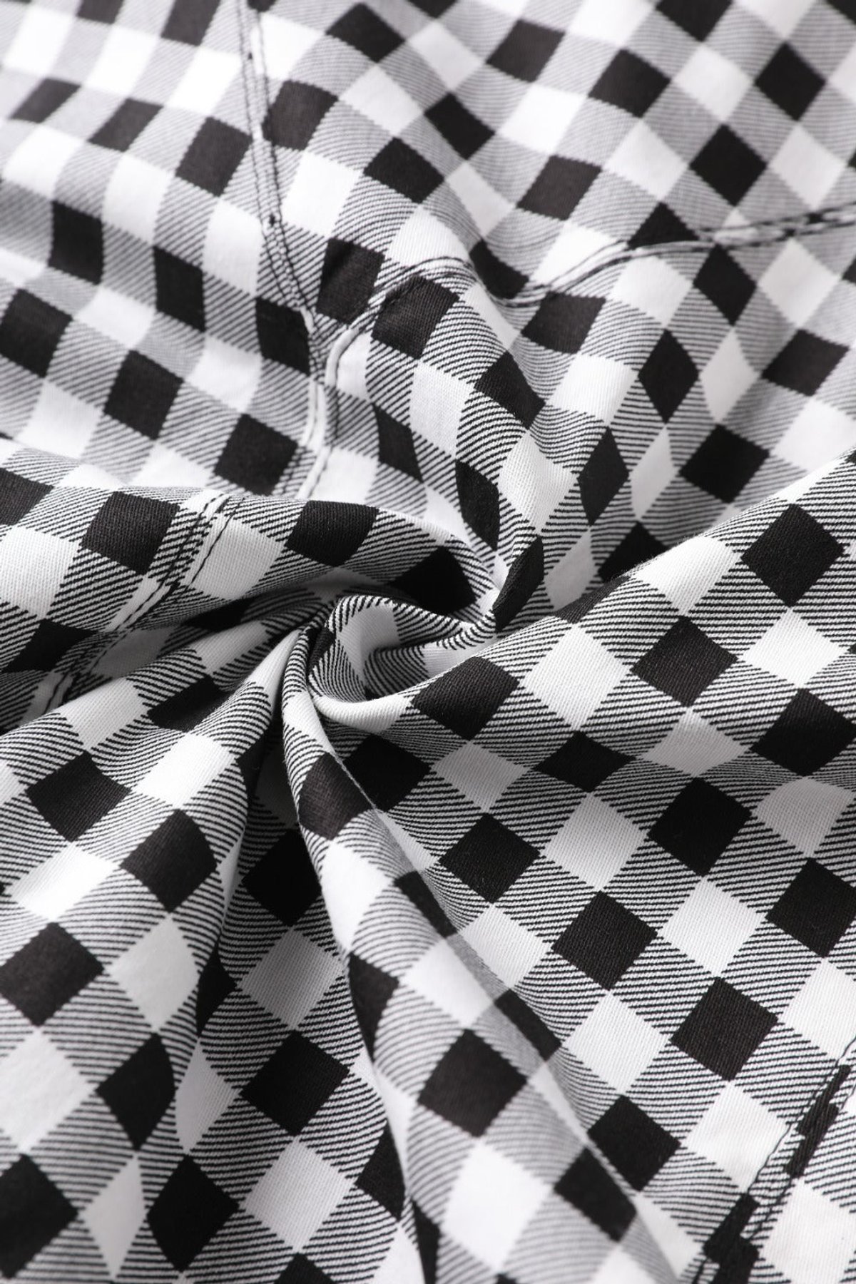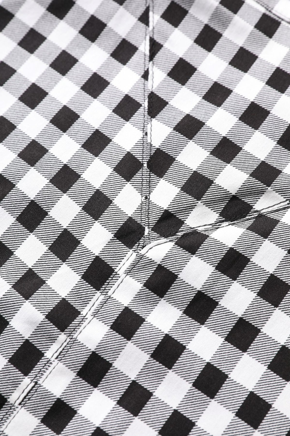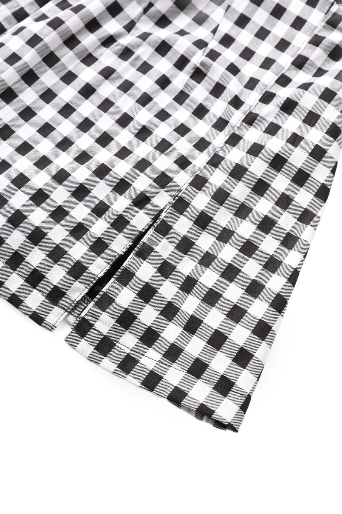 Add a dash of vintage charm to your wardrobe with our Sabrina Monochrome Check Shrug—where timeless elegance meets feline finesse. The classic black and white check pattern, complemented by a charming bow neckline, makes this piece a true style purr-fection. Its tailored fit and secure popper fastening ensure you’ll look effortlessly chic, whether layered over a swing dress or paired with your favorite retro accessories. Crafted from a comfy cotton blend, it offers a purrfect balance of style and comfort, so you can stay elegant all day long without sacrificing ease. A versatile wardrobe staple, this shrug is ready to elevate your look with a dash of feline flirtation. Keep it sharp and stylish—because you don’t need to claw your way into glamour.