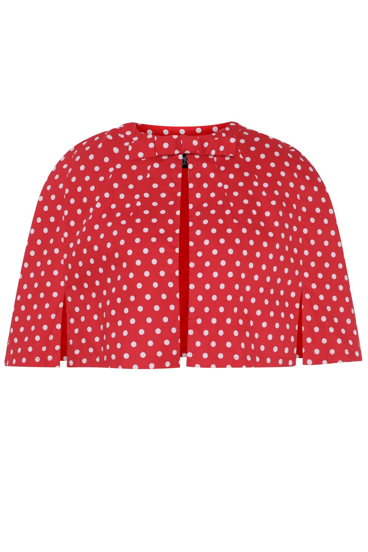 Sabrina Red Vintage White Polka Dot Print Comfy Cape Shrug  Shop now at Kitty Darling