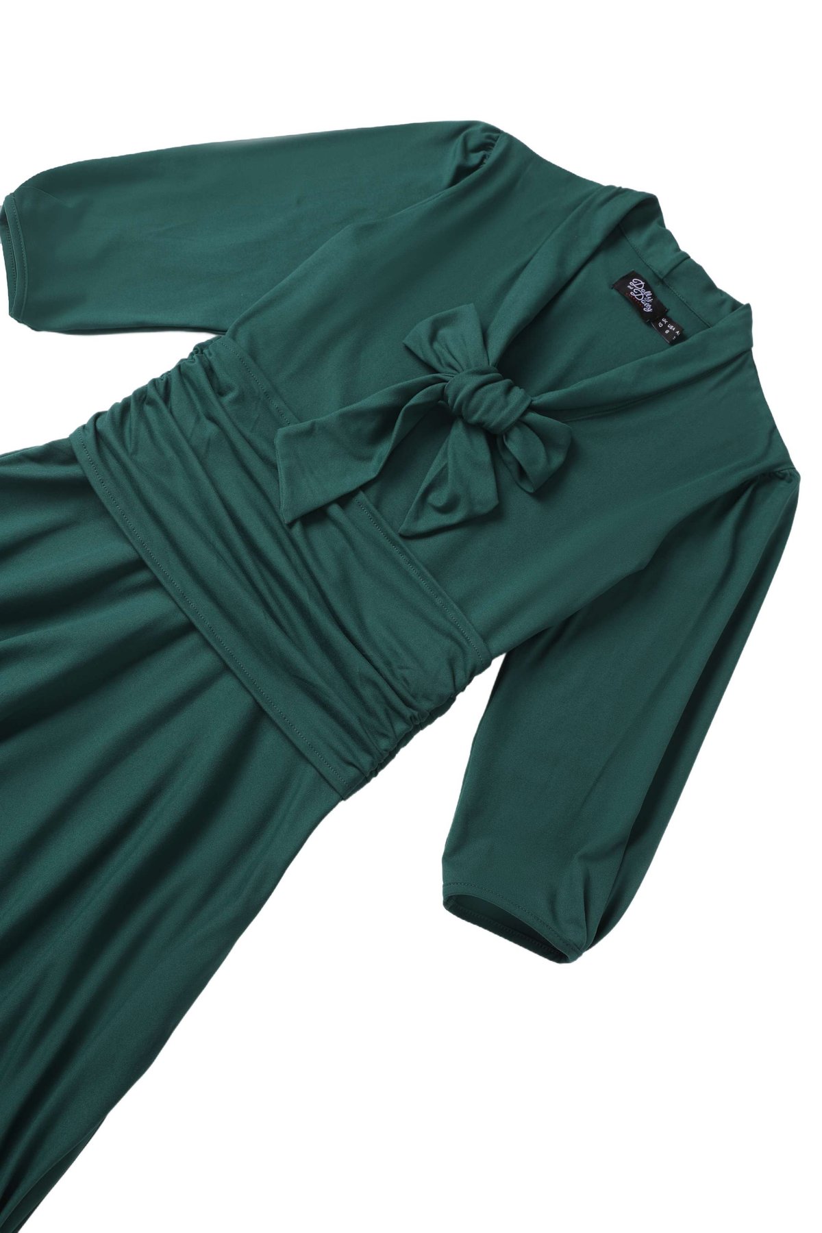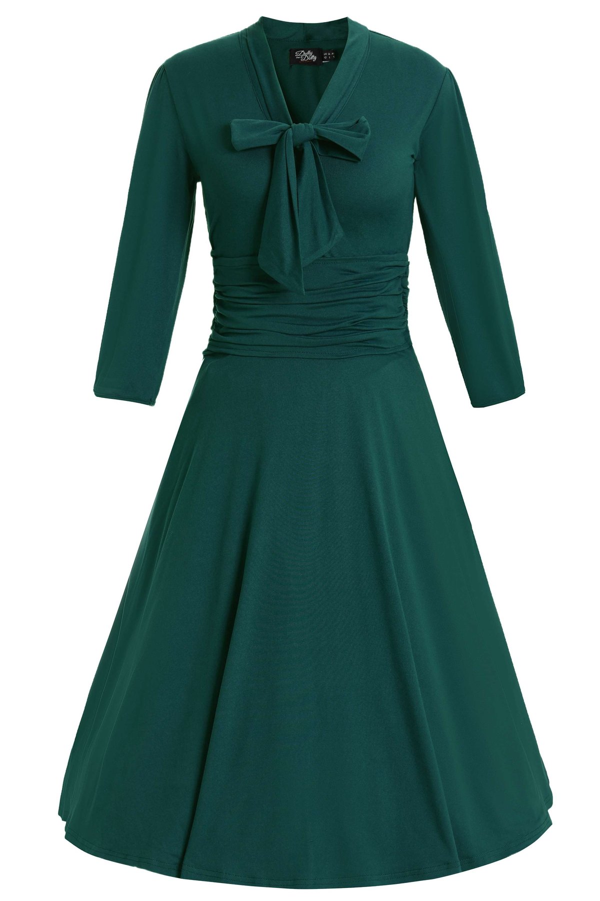 Get ready to purr, because this Sandra Bow Tie Casual Dress in emerald green is your new go-to for effortless chic. Its vintage-inspired silhouette, complete with a ruffled, fitted bodice and a flared skirt, offers a playful yet polished look. The high neckline with a cheeky bow detail gives it just the right touch of retro glamour, while the three-quarter-length sleeves keep things gracefully refined. Crafted from a soft knit blend, it sways with your every move and promises all-day comfort, making it as practical as it is pretty. Whether you’re heading out for a daytime brunch or an evening soirée, this dress is sure to turn heads and claws-down gorgeous in your wardrobe.