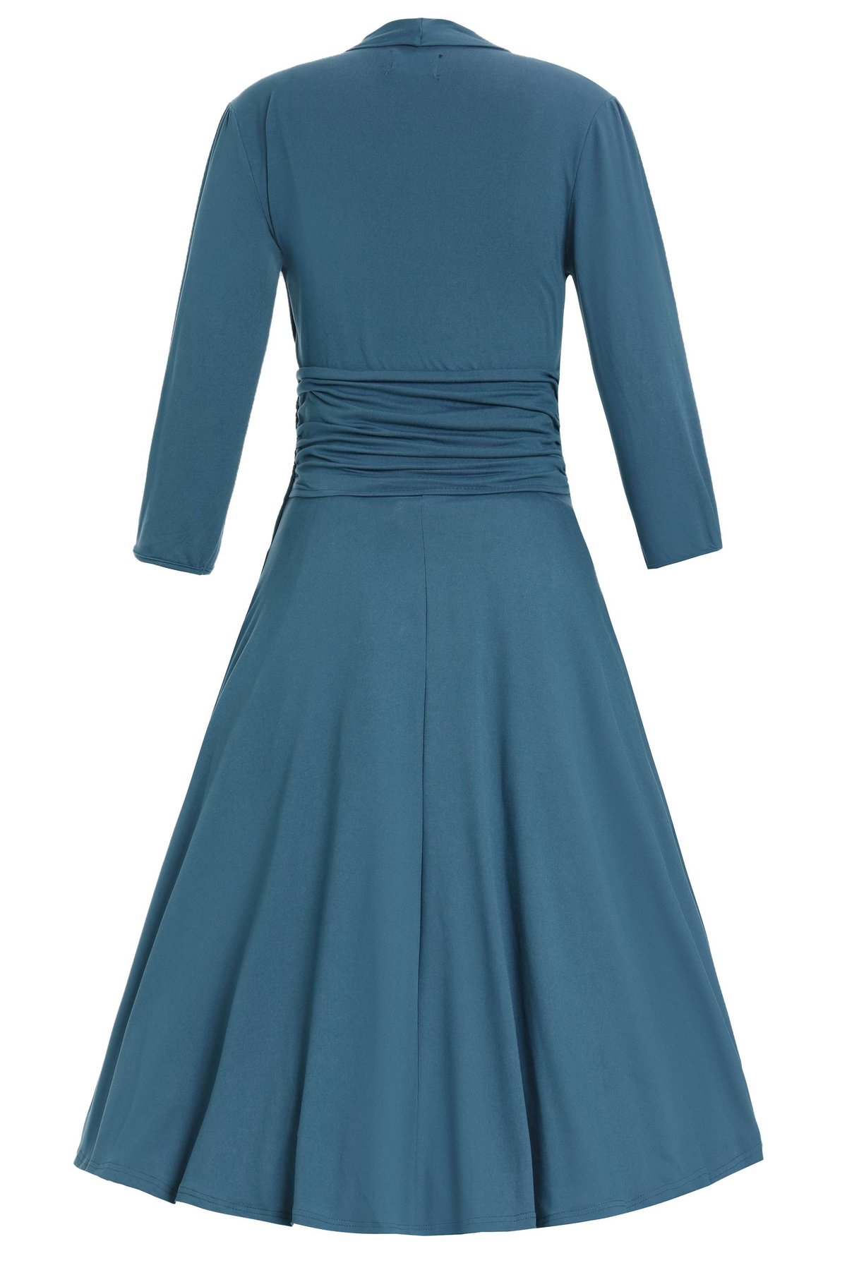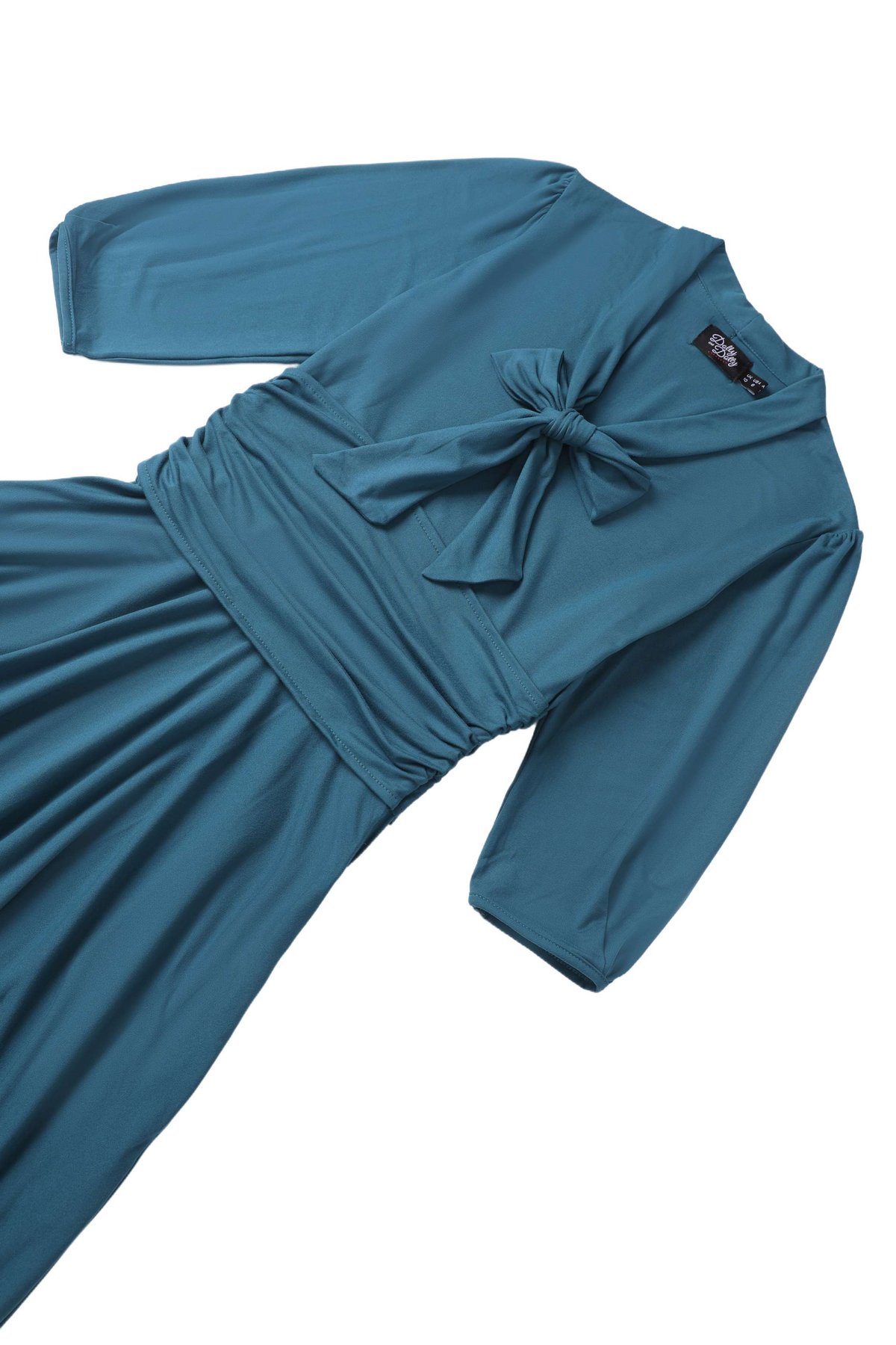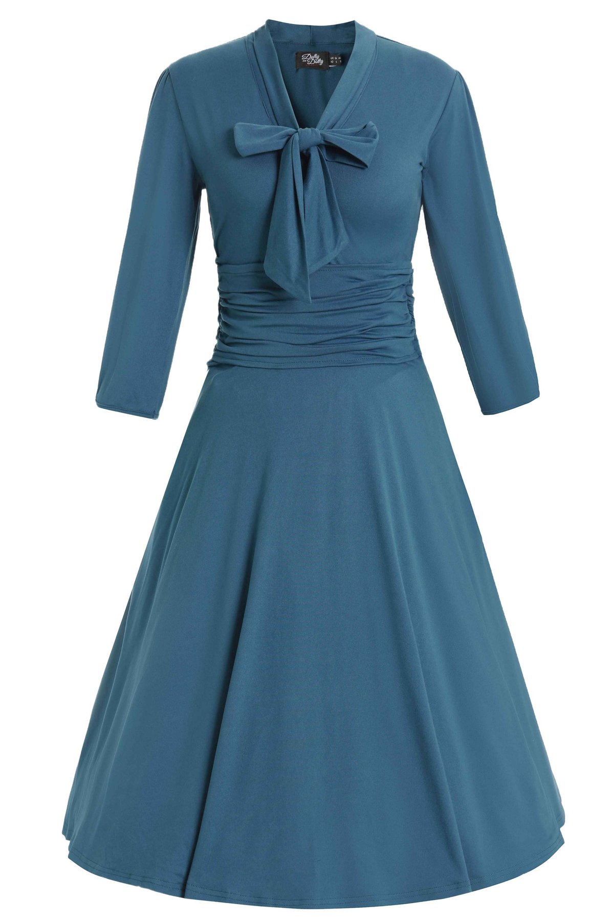 Unleash your inner vintage vixen with the Sandra Bow Tie Casual Dress in peacock blue—an absolute purrfection for those who adore a dash of retro glamour with a modern twist. Its charming ruffled bodice and flared skirt create a silhouette that's both flattering and playful, while the high neckline with a sweet bow adds a hint of mischievous charm. Soft knit fabric drapes with feline finesse, making this dress as comfortable as it is chic—perfect for turning heads without missing a beat in your busy day.