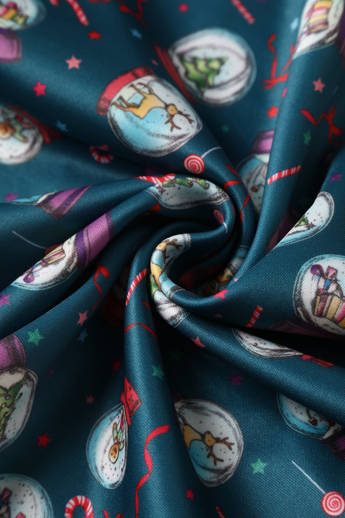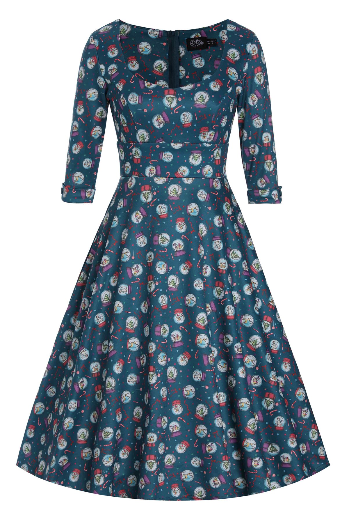 Step into the season with the Scarlette Long-Sleeved Stretchy Blue Dress—where vintage charm meets playful sophistication. Its whimsical snow globe print adds a touch of wonder, while the fitted bodice and sweetheart neckline flatter every figure. The 3/4 length sleeves keep things chic and cozy, and the full-circle skirt invites you to twirl your way through your day — all while hidden pockets offer a discreet spot for your little essentials. Crafted with just the right hint of stretch, this dress promises comfort without compromising on style, making it your wardrobe’s new purr-fect staple.
