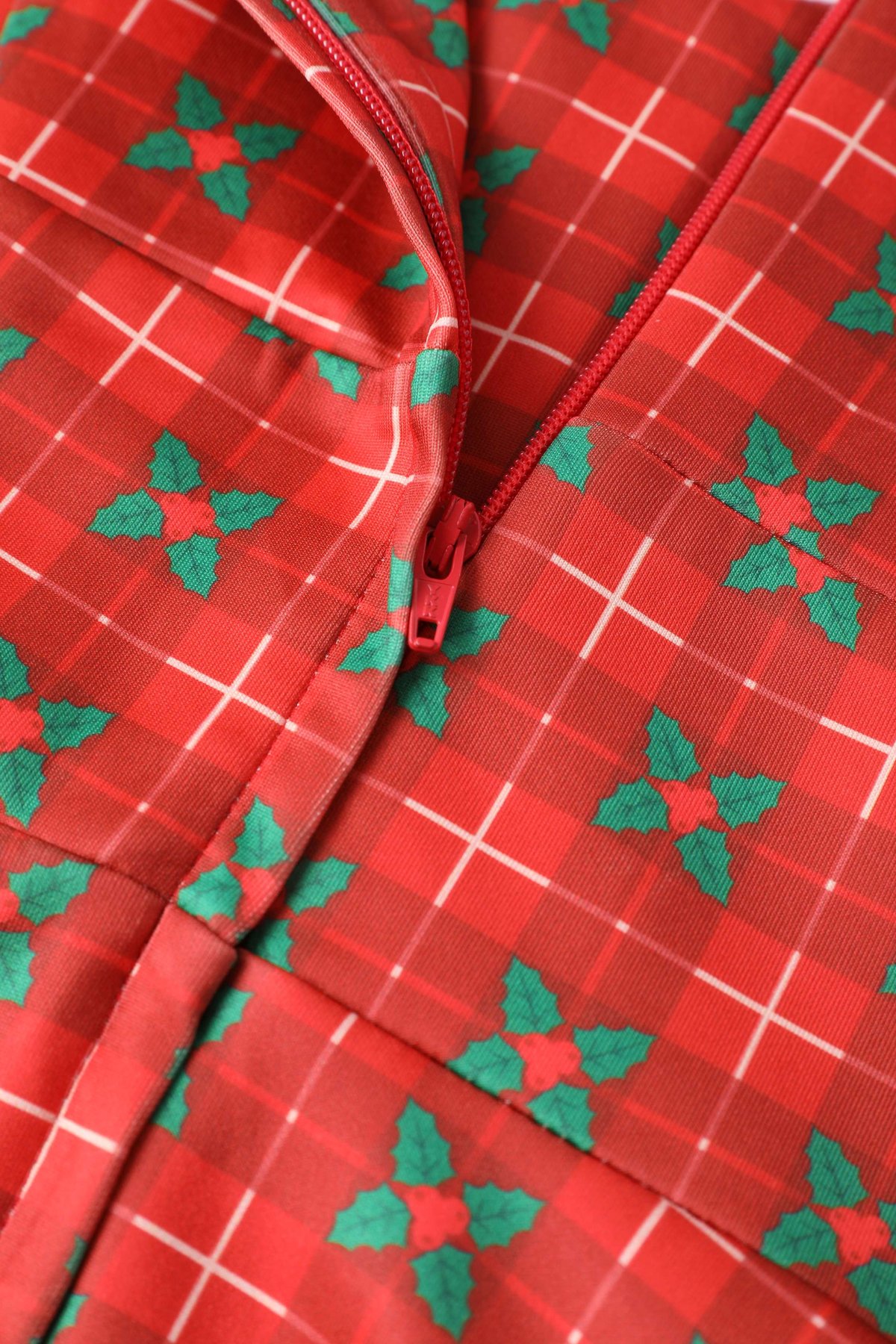 Get ready to turn heads in our Scarlette Mistletoe Plaid Midi Dress—where vintage charm meets holiday cheer in the most purrfect way. Featuring a classic red plaid check with festive holly leaves, this dress is a true showstopper. The fitted bodice and sweetheart neckline bring a touch of feminine allure, while the mid-calf circle skirt offers a playful swish with every step. Hidden side pockets add a cheeky hint of practicality, and the 3/4 sleeves make it a versatile choice for all your seasonal festivities. Crafted from a comfy stretch fabric, this midi promises to keep you looking chic and feeling cozy from brunch to soirées.