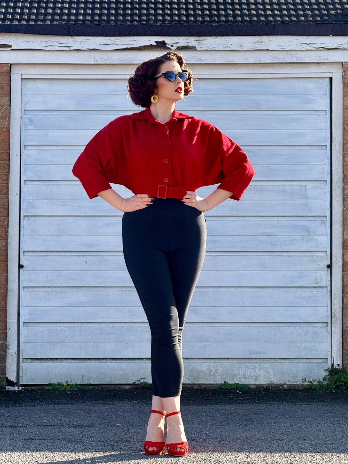 Unleash your inner vintage vixen with this firecracker of a jacket—bold, playful, and oh-so-chic. The vibrant solid red hue is simply claws-down gorgeous, commanding attention with every step. The relaxed fit bust and fitted belted waist create that iconic hourglass silhouette, while the sassy 3/4 batwing sleeves add a hint of mischievous flair. Crafted from luxurious wool with a silky inner lining, this piece whispers authentic 50s glamour with a modern, playful twist. Whether you're feeling flirty or fierce, it’s the purrfect way to add a pop of vintage allure to your wardrobe.