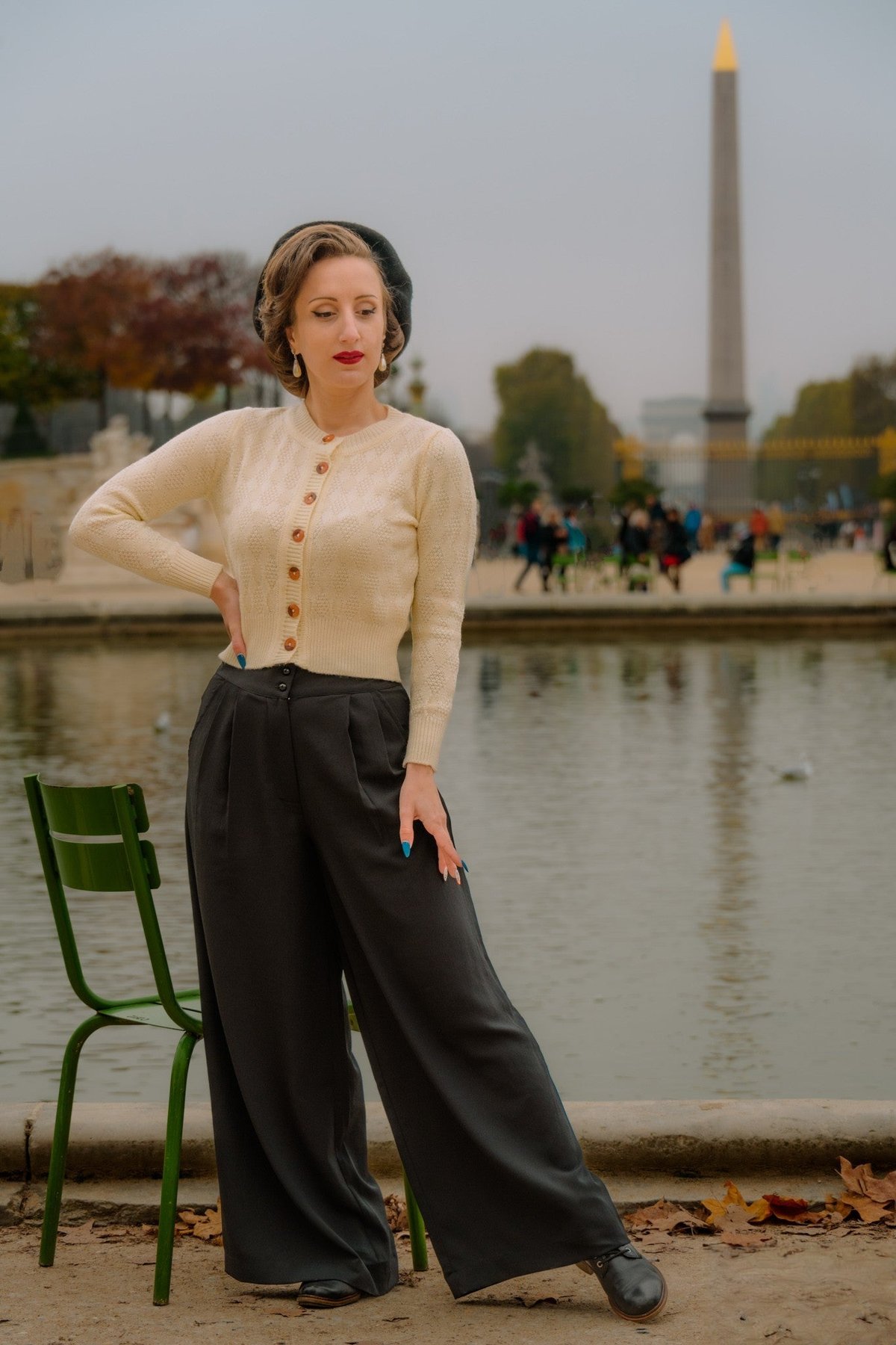 A sleek silk blouse tucked in will highlight the high waist, while statement earrings can add just enough sparkle. For women, a pair of pointed heels or vintage-inspired flats will keep you looking claws-down gorgeous, while men can style them with a crisp shirt and chic loafers for a sharp, retro-inspired look. Either way, a vintage clutch or a bold belt will seal the deal — because darling, every detail counts.