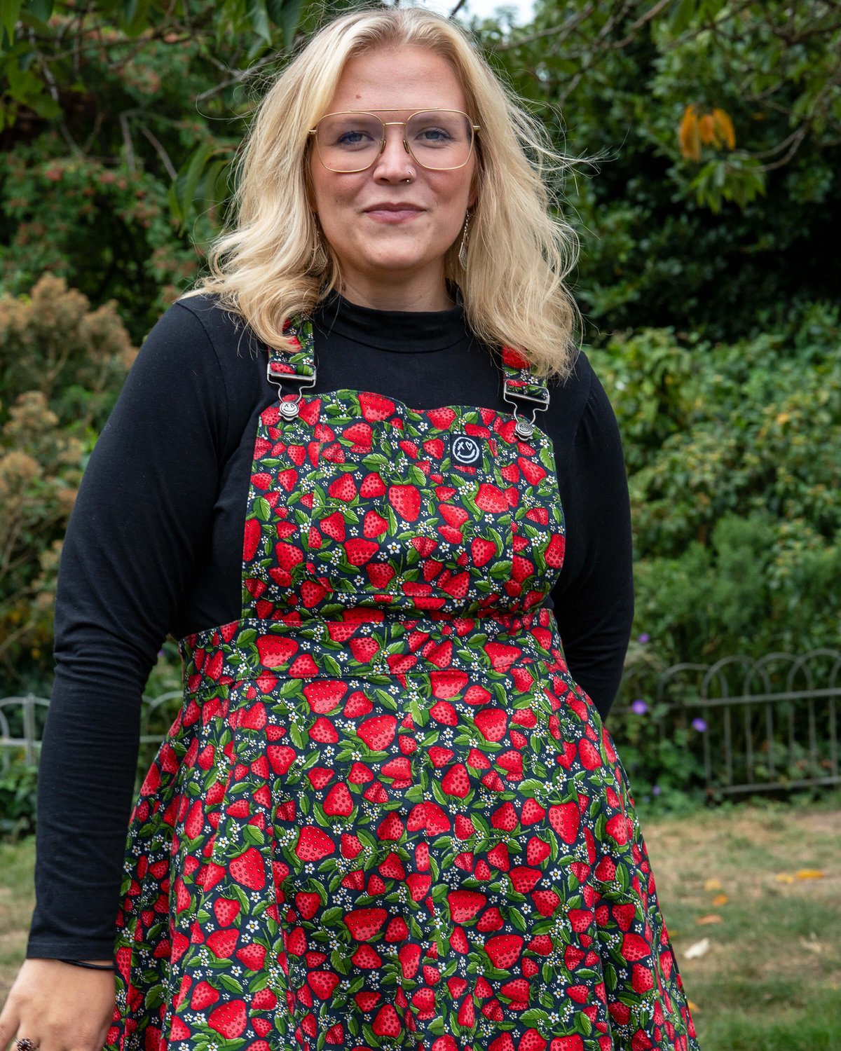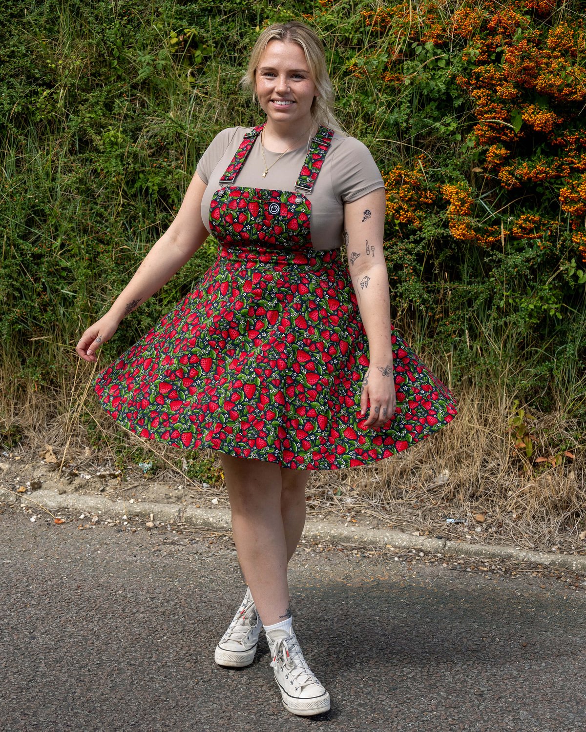 Purrhaps one of the sweetest additions to your wardrobe, the Strawberry Field Stretch Flared Pinafore is a delightful blend of vintage charm and playful flair. Its bold strawberry print dances across a flattering skater silhouette, with just enough stretch to keep you comfy while looking claws-down gorgeous. Perfect for those sun-kissed afternoons or cozy weekend adventures, this piece invites you to embrace your inner boho queen with a mischievous twist.