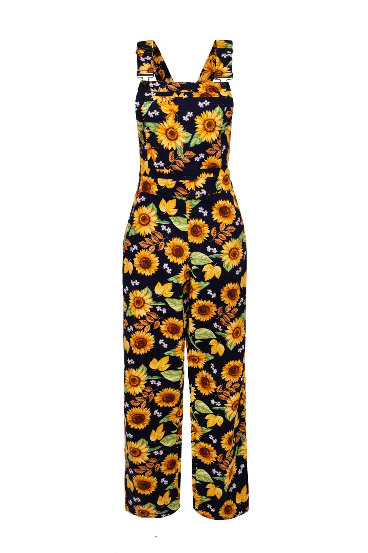 Step into sunshine with our Sunflower Dungarees – a burst of cheerful floral charm that’s impossible to ignore. The navy background makes those bright yellow sunflowers pop, creating a look that’s both playful and effortlessly chic. Designed with a straight-leg silhouette and adjustable straps, these dungarees promise a fit that’s as comfortable as it is claws-down gorgeous. The front pocket adds a dash of practicality, while the stretch cotton twill ensures you stay comfortable whether you’re out exploring or cozying up in style.