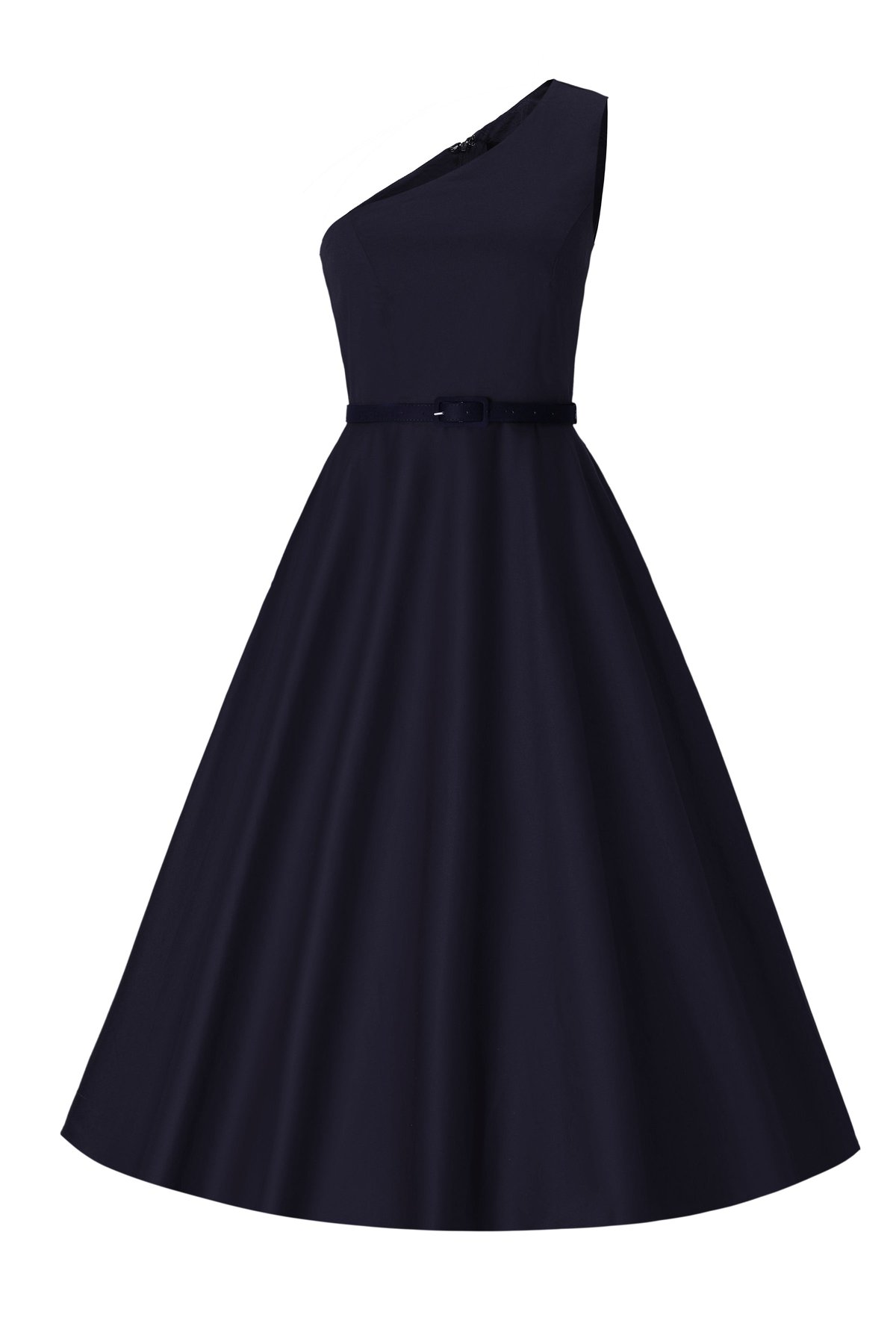 Unleash your inner vintage vixen with the Susan One Shoulder Navy Blue Swing Dress—where timeless charm gets a modern twist. Draped in navy, this dress features a sleek one-shoulder design that’s both daring and refined, while the flattering A-line silhouette ensures you’re claws-down gorgeous from every angle. The fitted bodice, cinched waist belt, and subtle yet chic details make it a purrfect choice for those who love to turn heads without trying too hard. Crafted from a cozy cotton blend, it offers a delightful balance of style and comfort, so you can sashé into any event with confidence and ease.
