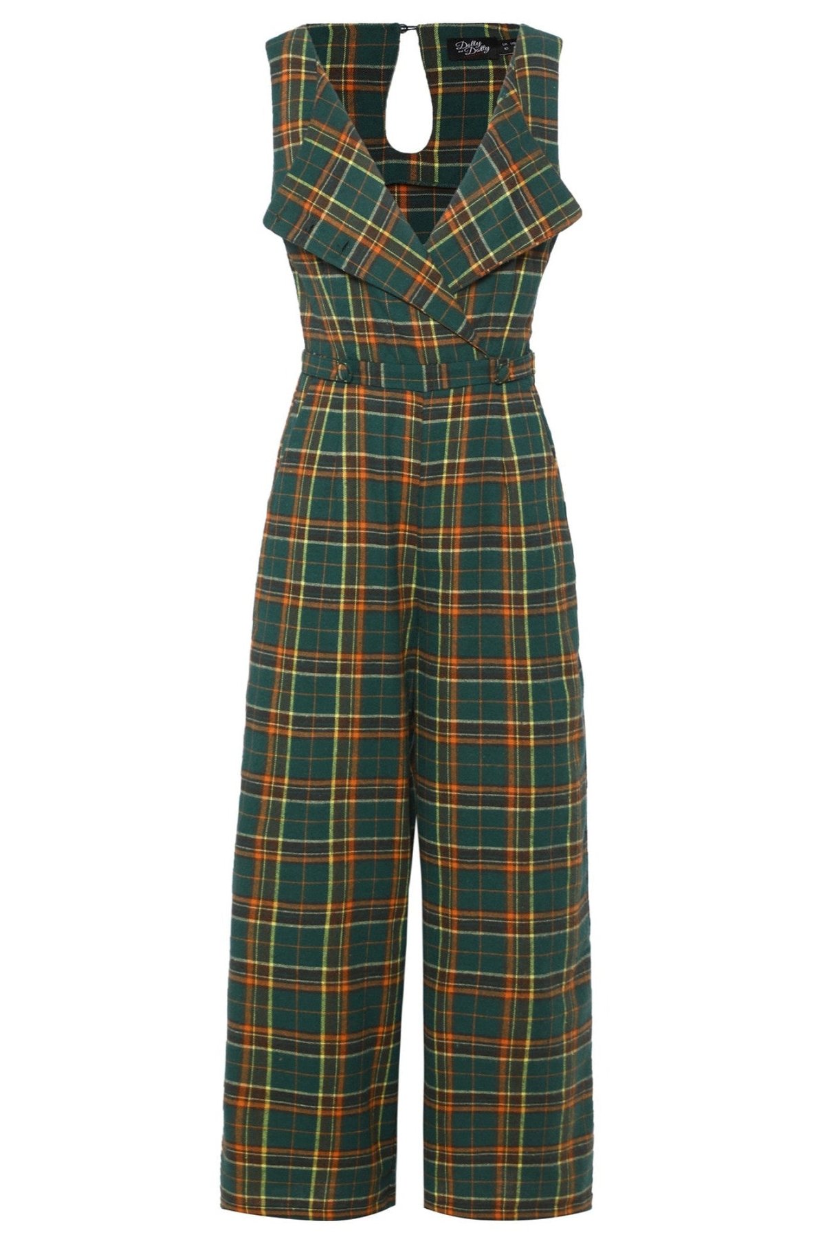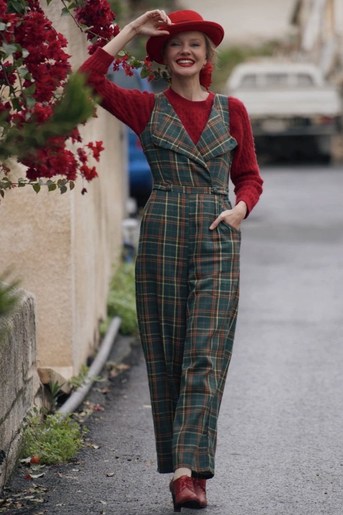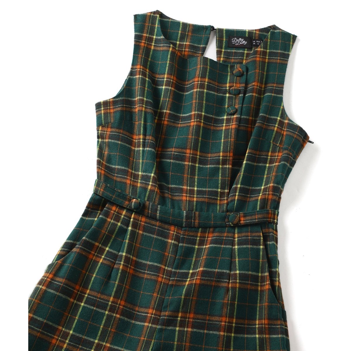 Unleash your inner vintage vixen with the Sylvia Green Tartan Jumpsuit—where classic charm meets a modern twist. Its lush green tartan pattern is bold yet timeless, perfectly complemented by the playful neck buttons that invite you to switch from polished to flirty in a snap. Crafted from 100% cotton, it’s as comfy as it is chic, offering a purrfect blend of style and ease. The waist-cinching belt and back keyhole detail add just the right touch of glamour, making this jumpsuit a versatile staple for your wardrobe.