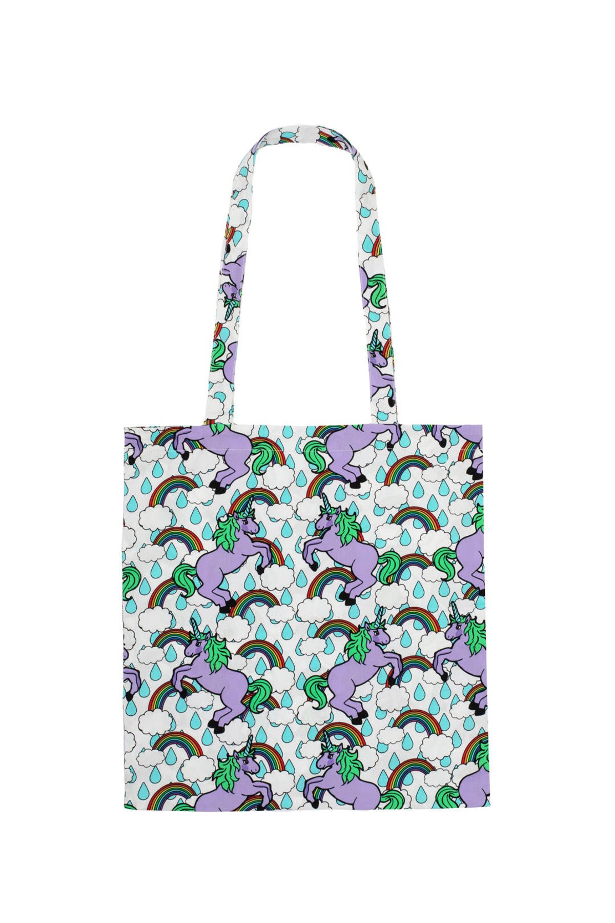 Unleash your inner enchantress (or gentleman) with this whimsical unicorn tote that’s as delightful as a rainbow after a drizzle. Adorned with dancing unicorns and vibrant rainbows, it’s a playful yet chic statement piece that’s bound to turn heads and spark smiles. Perfectly roomy at 38cm by 36.5cm, it’s just the right size to carry your essentials — whether you're chasing a sunny picnic or conquering a shopping spree with a dash of magic. Crafted from sturdy cotton with a lined interior, this tote combines practicality with a splash of fantasy, making every day feel like a stroll through a fairy tale.