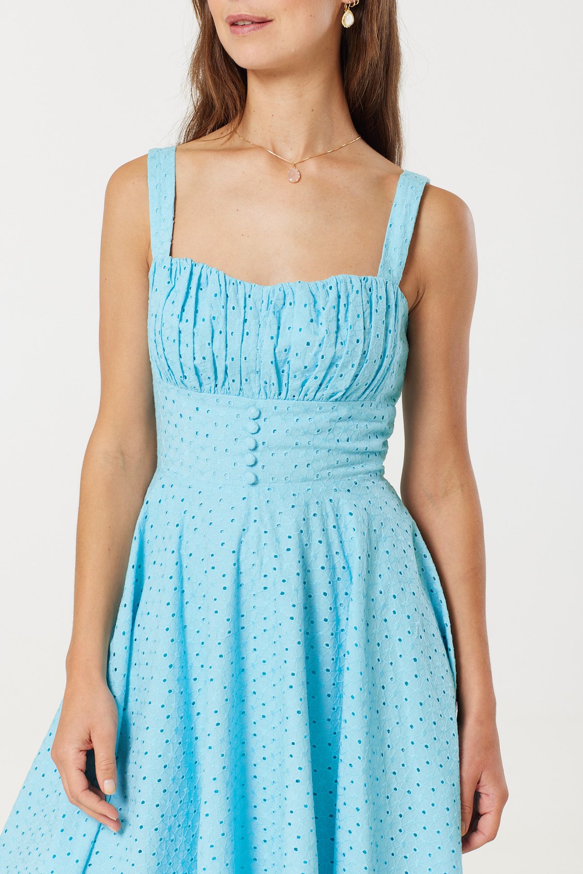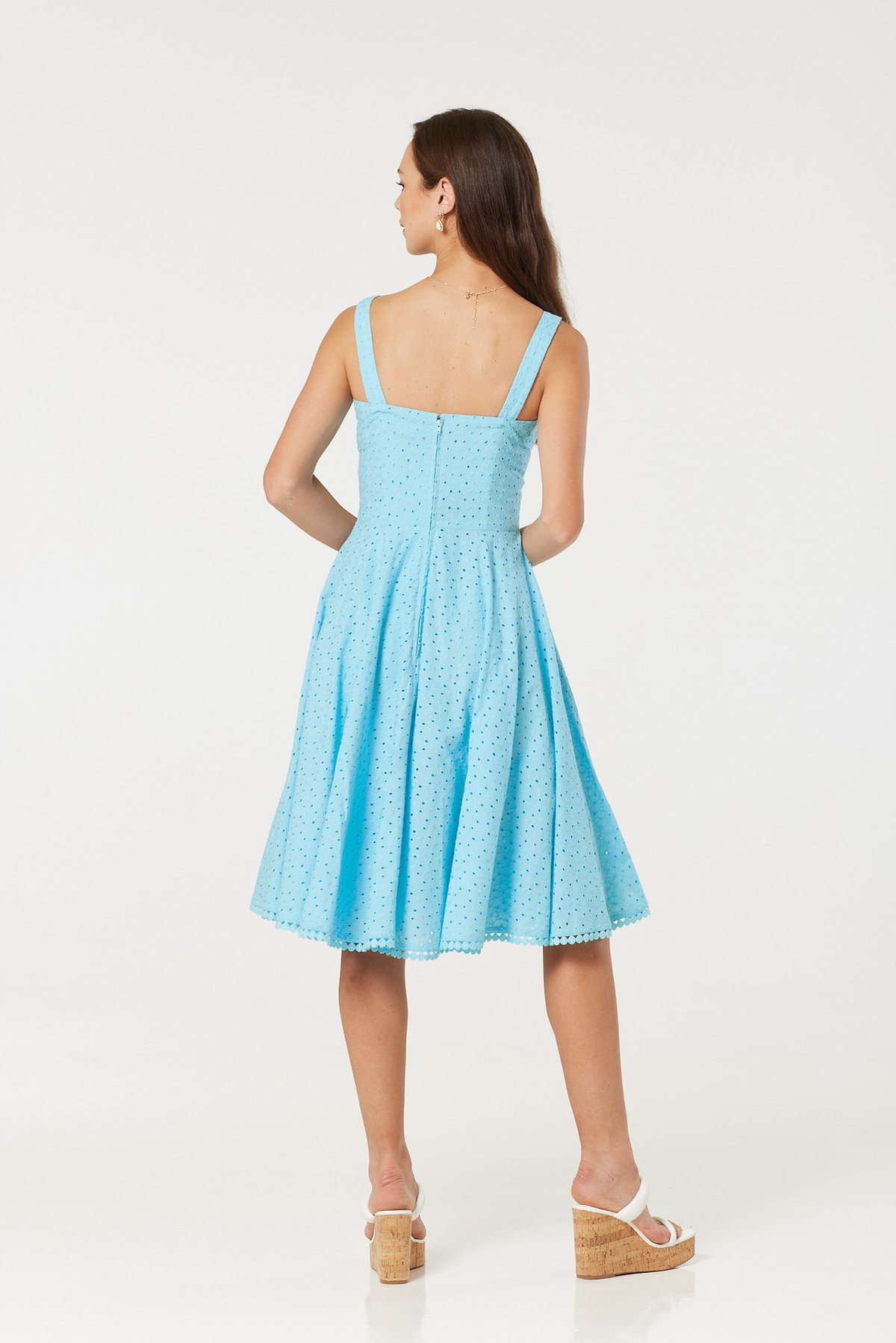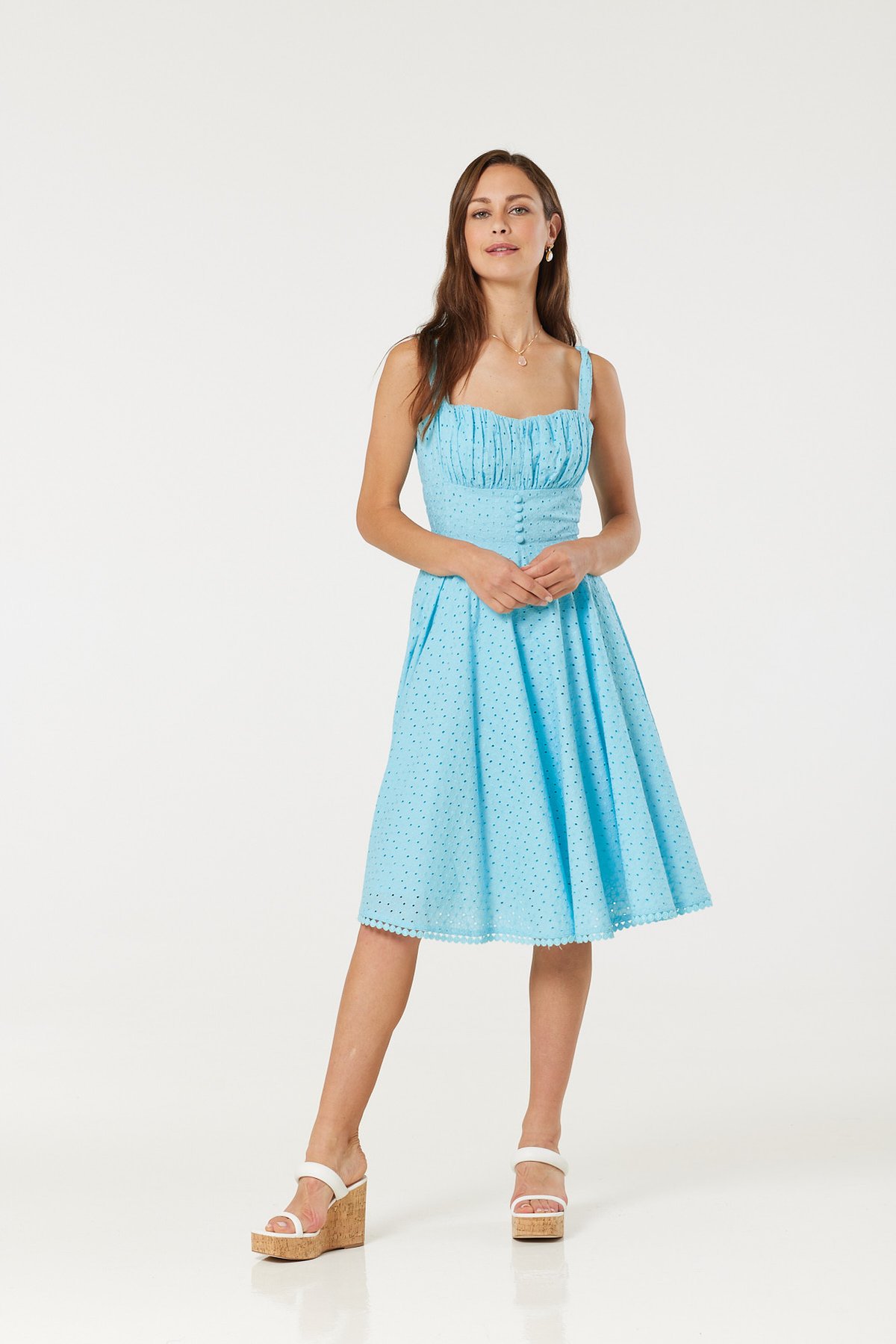 Step into the sunshine with the Valerie Sky Blue Dress, a charming blend of vintage flair and playful sophistication. Its dreamy sky blue hue and classic polka dot pattern evoke a sense of retro glamour, while the gathered bust and fitted waist create a silhouette that's both flattering and irresistibly twirl-worthy. The flared skirt adds movement and fun, making this piece a true purrfect choice for those who love to combine ease with elegant style. Whether it's a breezy afternoon picnic or a garden party, this dress will have you looking pawsitively gorgeous from every angle.