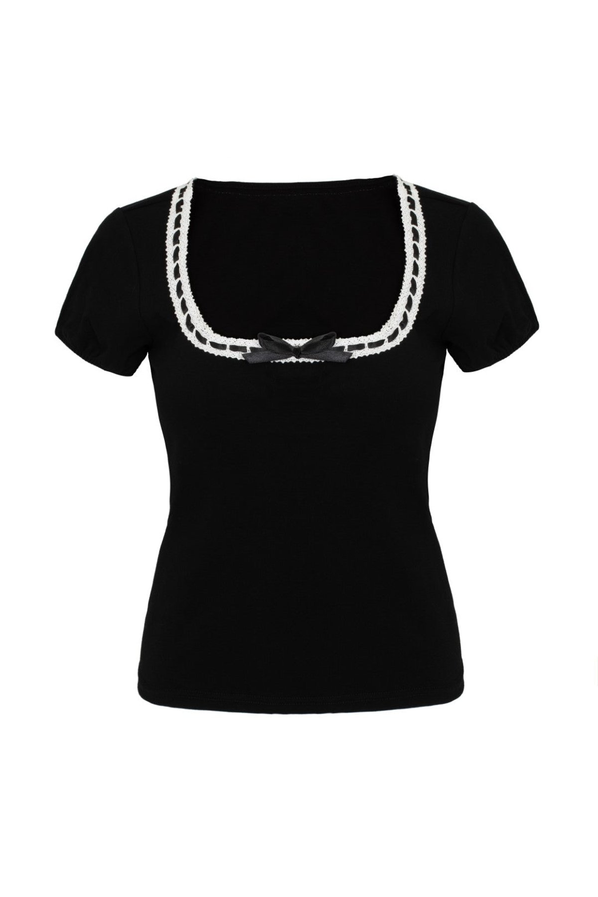 Step into your vintage wonderland with our 🖤Vintage Black Jersey Top🖤. Be the belle of the retro ball, looking both chic and comfortable. This alluring top is crafted from a soft 94% cotton and 6% elastane blend that lovingly caresses your curves. A scooped low neckline graced with delicate white lace and a mischievous black ribbon offers an exquisite touch of romantic charm.