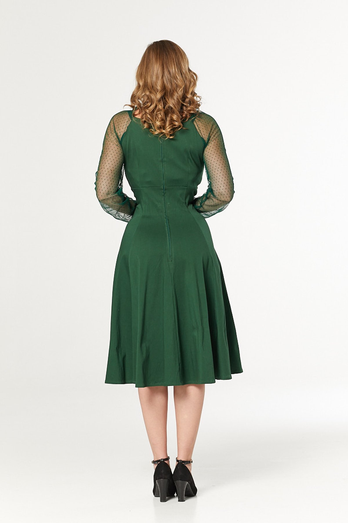 Unleash your inner vintage vixen with the Chelsea Dress—a lush forest green stunner that oozes retro charm with every sway. Its classic 50s-inspired silhouette, complete with charming faux buttons and flirty 3/4 mesh sleeves, makes every moment feel like a scene from a glamorous old film. Crafted from plush, thick cotton, this dress offers a plush, comfortable fit that moves with you, not against you. The flattering empire waist is a foolproof way to celebrate your curves, while the practical pockets add just the right touch of modern ease. Whether you're heading to a stylish brunch, a vintage fair, or a cozy date night, this dress is your go-to for a look that’s both polished and playful.