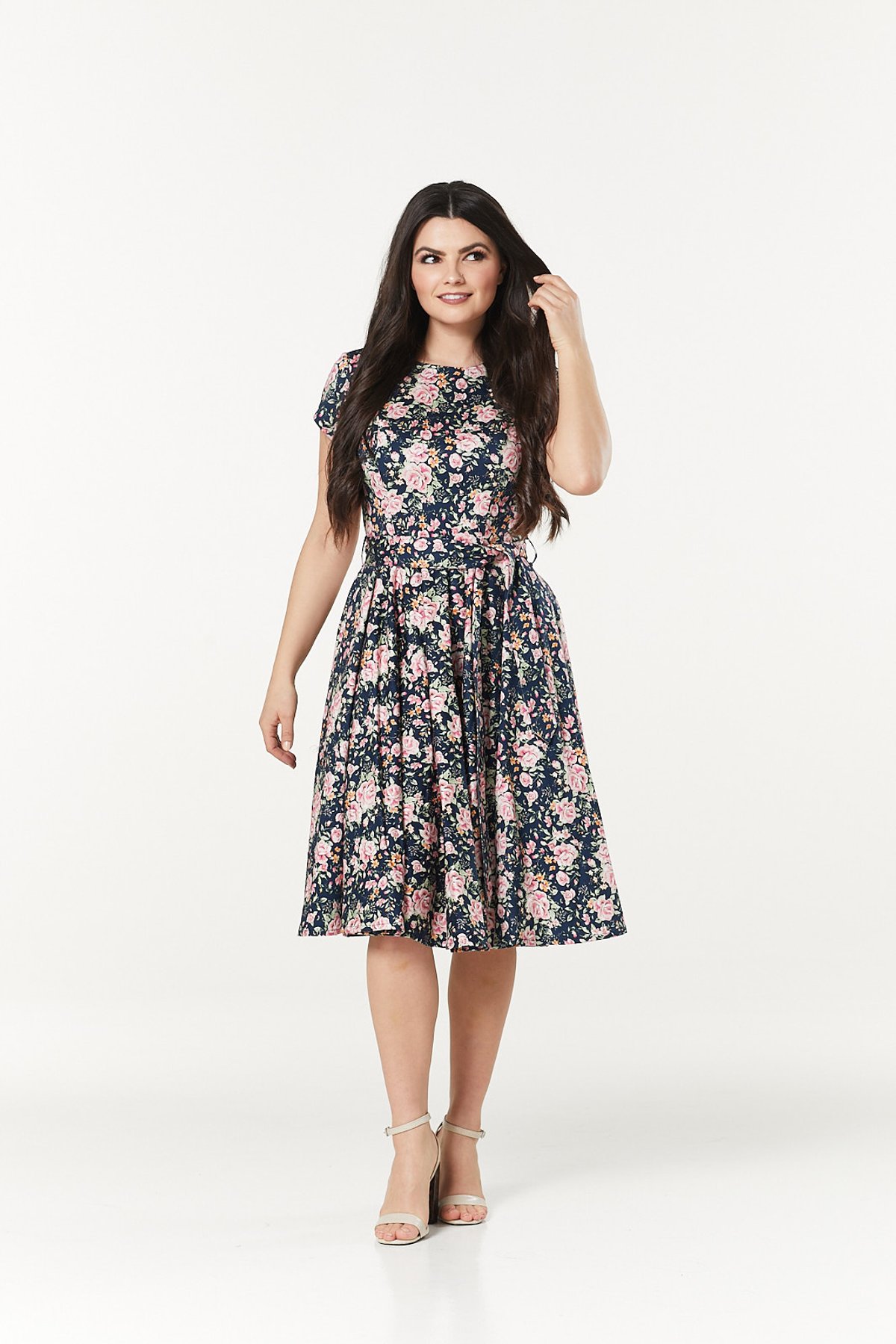 Step into the purrfect blend of vintage charm and modern flair with the Cleo Dress. Its navy base adorned with pretty pink florals creates a look that's both timeless and irresistibly feminine. Designed to flatter your silhouette with a swingy skirt and a touch of retro romance, this dress is a delightful way to channel classic glamour with a playful twist. Whether you’re channeling pin-up princess vibes or simply embracing a dash of nostalgic elegance, the Cleo Dress is ready to make your heart purr.