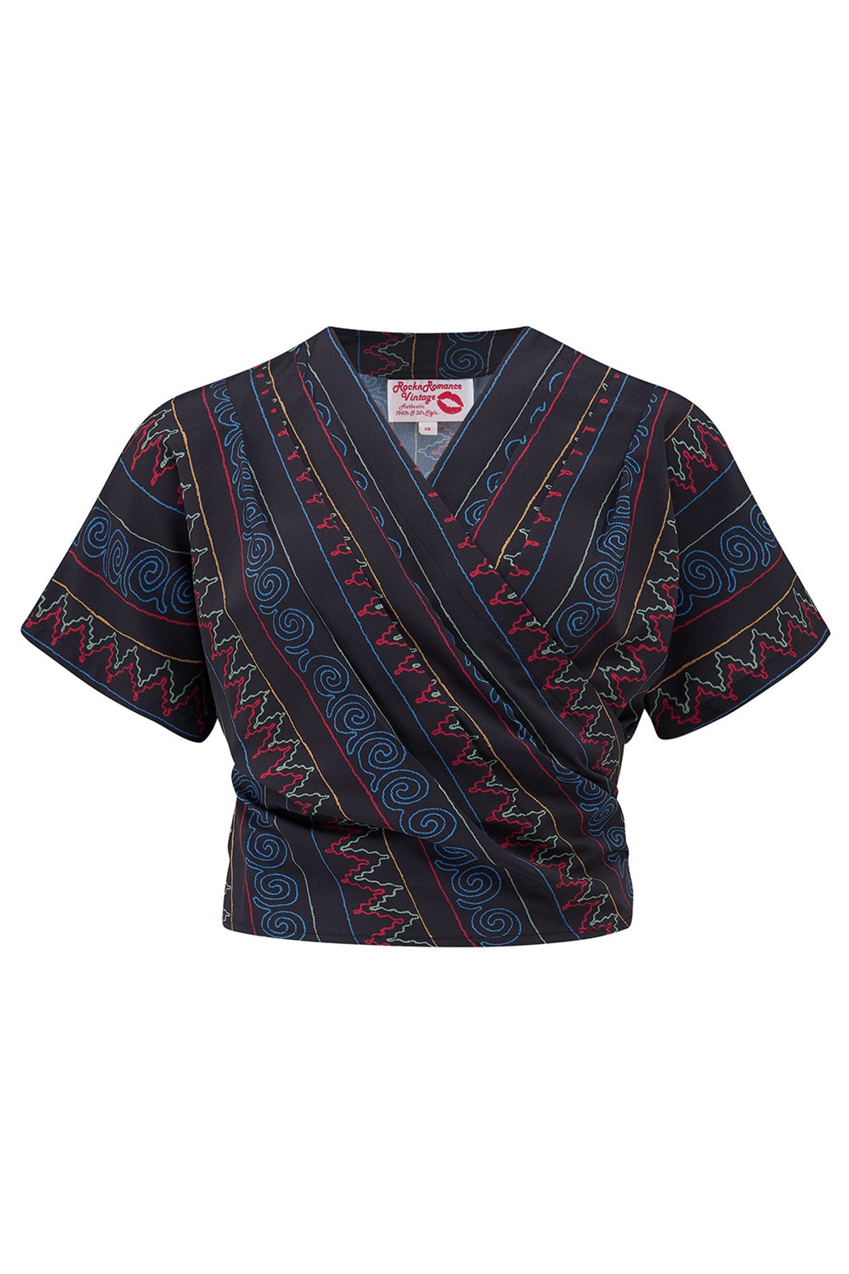 Unleash your inner vintage vixen with the Darla Short Sleeve Wrap Blouse — a true feline flirtation of style! Featuring multicoloured stripes and geometric patterns, this blouse is a paw-sitive play on timeless elegance. The wrap design offers a purrfect fit for all shapes, while the front pleats add just the right amount of comfort and charm. Crafted from soft poly crepe, it drapes effortlessly, making you look like you're strutting straight off a retro runway. Whether you're feeling playful or polished, this blouse is your go-to for a look that’s both sophisticated and a little mischievous. Its versatility makes it a real cat’s meow, ready to turn heads whether paired with a sleek skirt or your favorite jeans. Trust us, this piece will have you purring with delight every time you wear it.