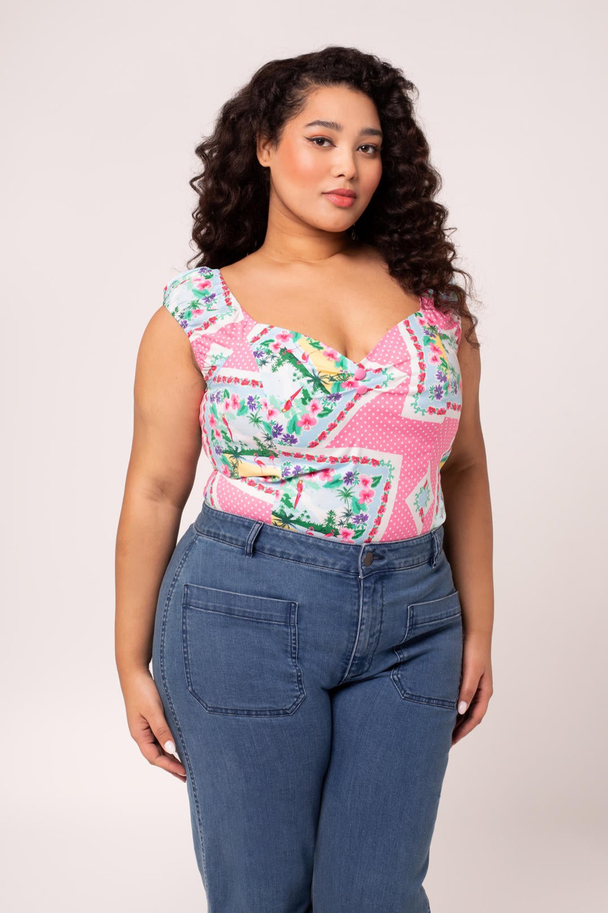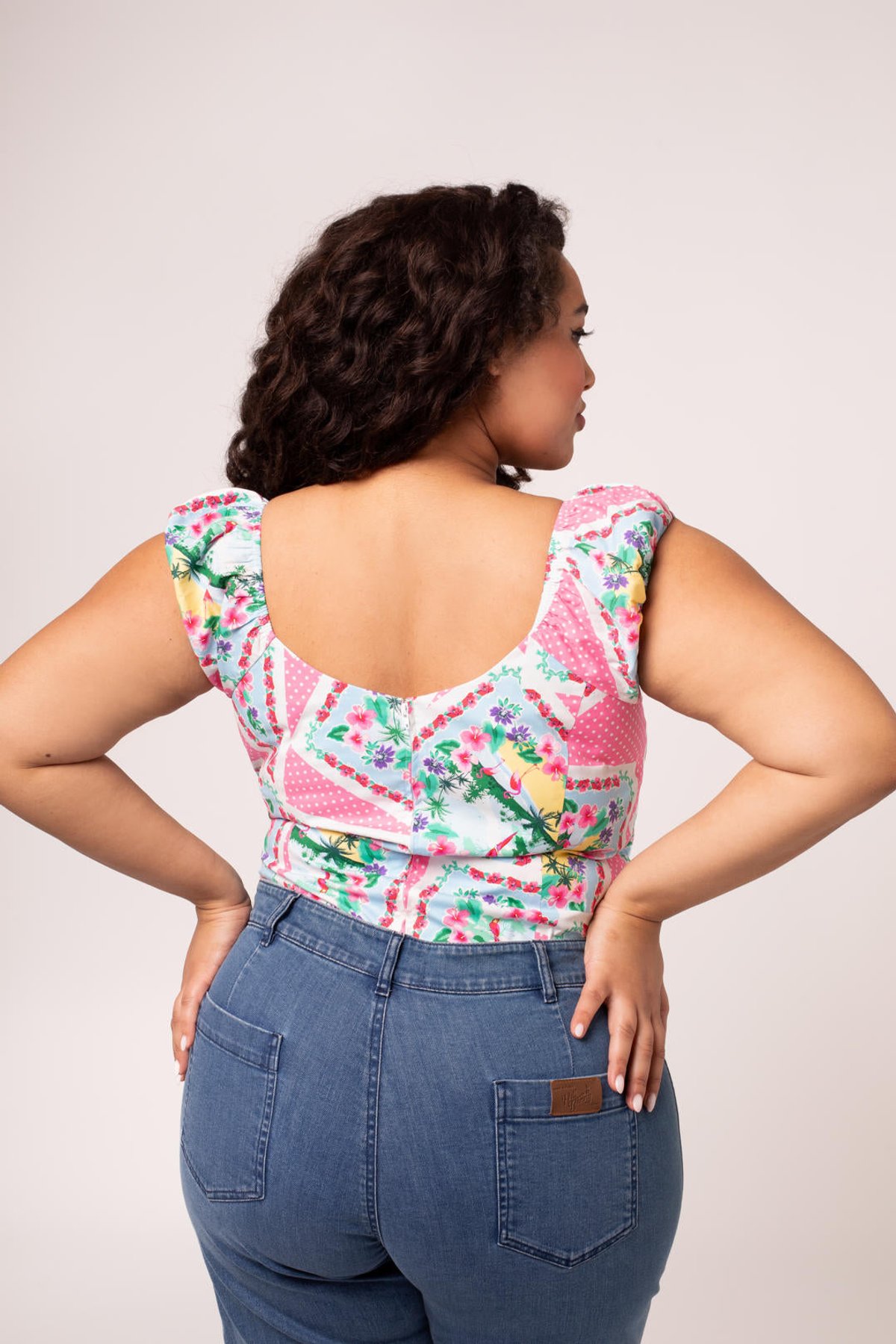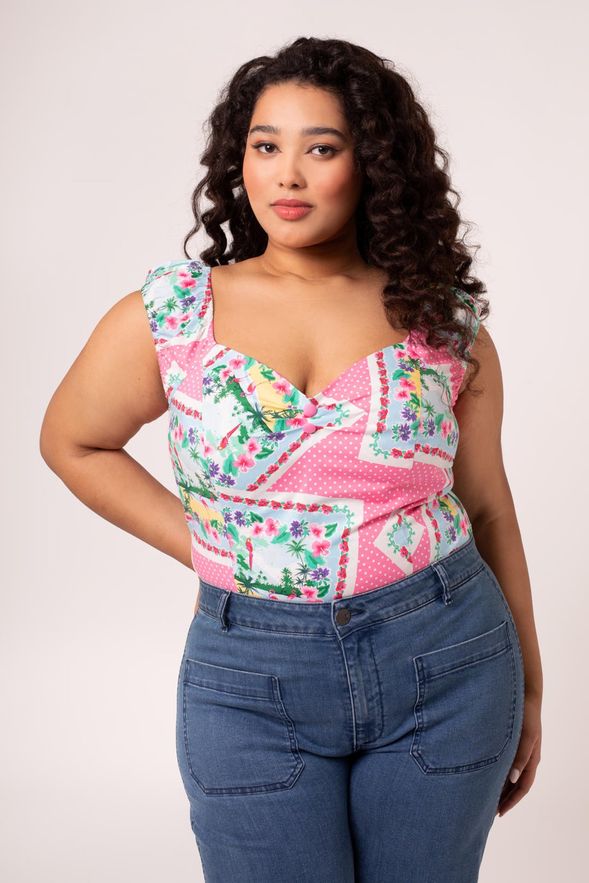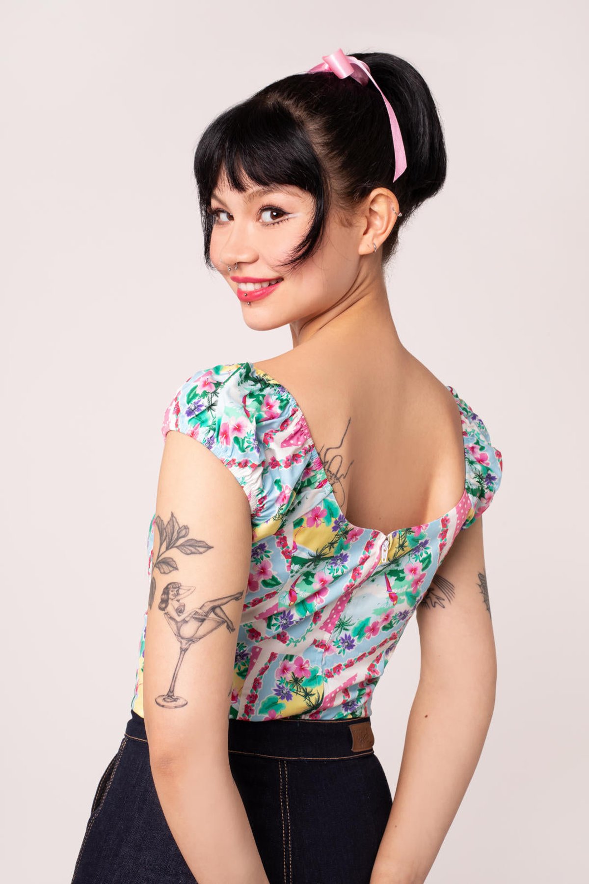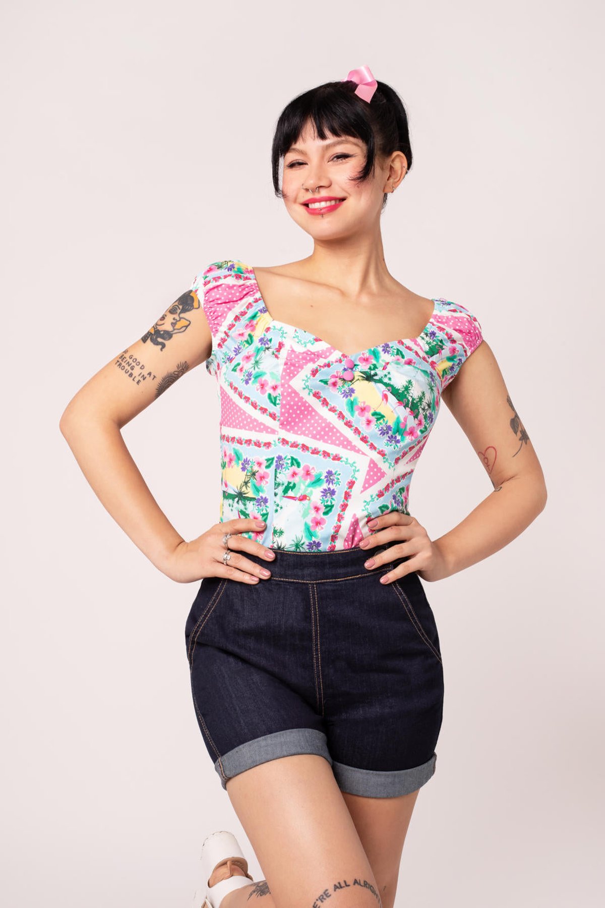 Introducing the Dreamland Top—a lovely blend of whimsical charm and effortless chic. With its soft pink and white floral-geometric pattern, this piece is designed to turn heads and create a purrfectly dreamy vibe. The sweetheart neckline, adorned with tiny pink buttons, adds a sweet yet sassy touch, while the princess seams and versatile elasticated edges ensure you look feline-fabulously stylish whether you wear it on or off the shoulder. Crafted from a comfy cotton-elastane blend, it’s as easy to wear as it is eye-catching, making it a true wardrobe staple for days when you want to feel just a little more divine.