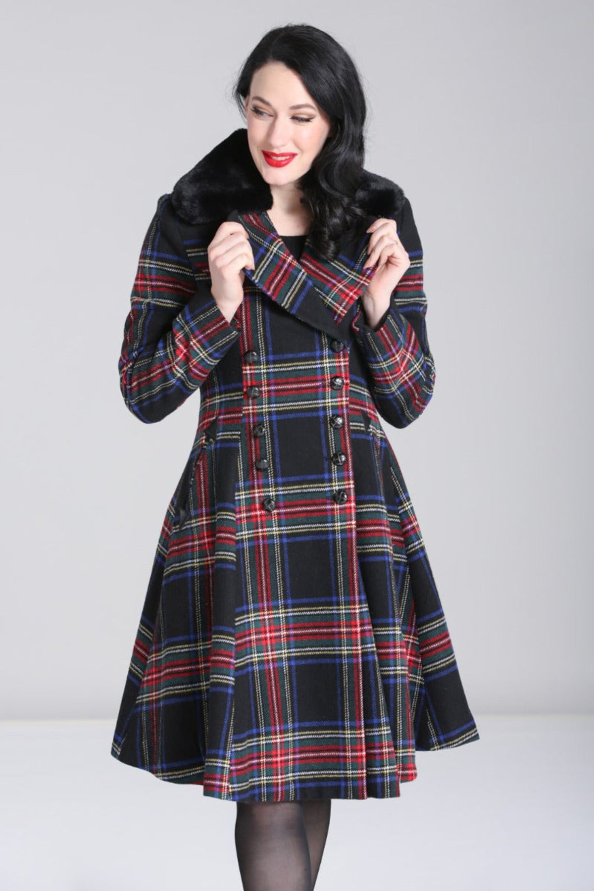 Step into the season with our Forester Coat—a true showstopper that’s as sharp as a freshly sharpened feline claw. The classic black and red plaid pattern commands attention, while the fitted bodice and flared silhouette create a purrfectly polished look. The V-neck collar, partially trimmed with removable faux fur, lets you switch from sleek to cozy in seconds—giving you versatile style that’s always a whisker above the rest. Crafted from sleek polyester, this coat offers a timeless charm with a modern, tailored edge. Faux leather accents on the pockets add a touch of daring sophistication, ensuring you look claws-down gorgeous no matter where you wear it. With its thoughtful details and figure-flattering shape, the Forester Coat is bound to become your go-to for those chilly days when you want to strut your stuff in style.