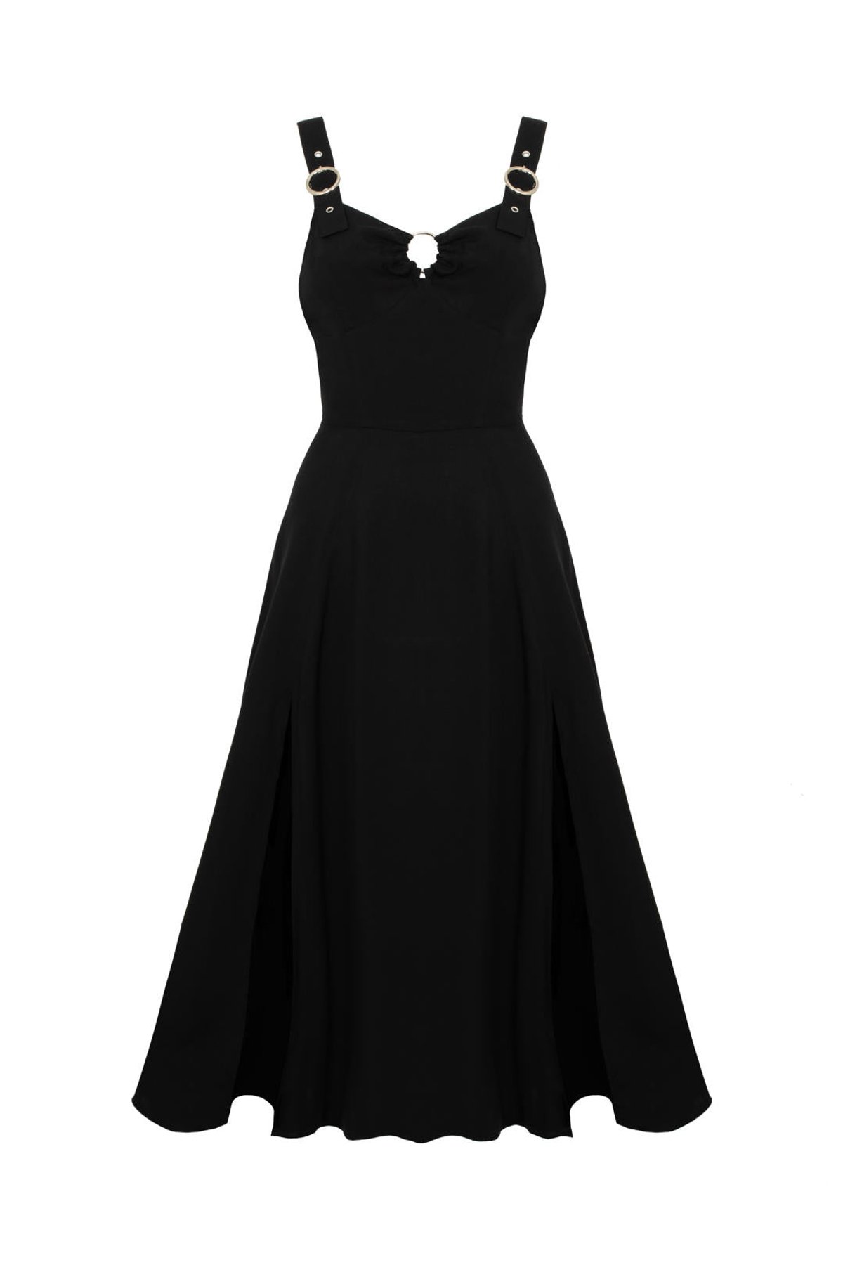Unleash your inner dark diva with the Morgana Dress—a silhouette that commands attention and exudes gothic glamour. The deep sweetheart neckline and shimmering silver ring detail add just the right touch of enchantment, while the fitted bodice and flowing maxi skirt create a purrfect blend of allure and elegance. Wide, adjustable straps with silver buckles add a hint of metallic magic, making this dress as versatile as it is captivating. Crafted from sumptuous viscose, it feels as divine as it looks, offering a luxurious drape that moves effortlessly with your every step. Whether you're channeling mysterious elegance or daring to turn heads, the Morgana Dress is your new go-to for all things darkly chic.
