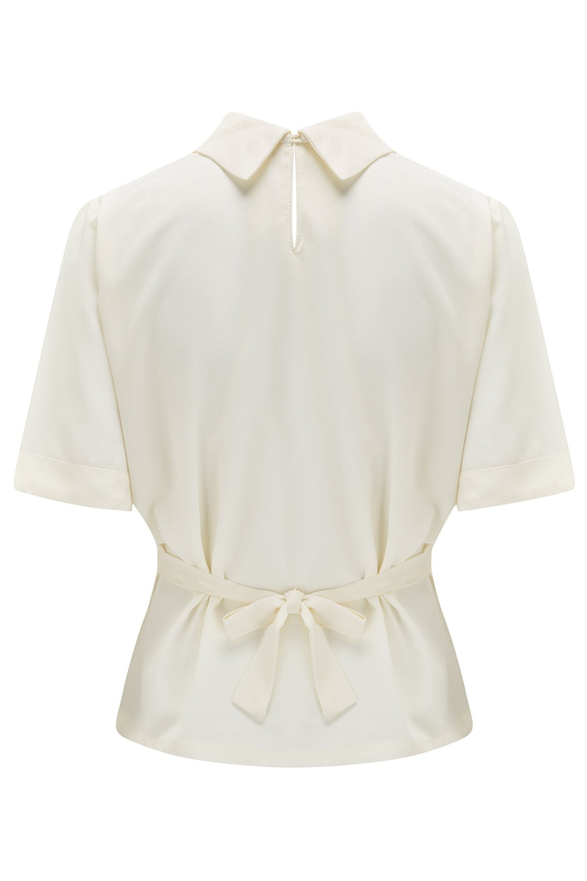 Unleash your inner vintage vixen with The Elsie Blouse in Antique White—an absolute purrfection that blends timeless charm with a playful twist. Its deep pleats and sweet collar ties give a nod to the fabulous 1950s silhouette, while the waist ties make sure you’re always looking claws-down gorgeous. Crafted from soft Poly Crepe, it drapes effortlessly, offering both comfort and style that’s easy to care for—just a gentle wash and you’re set to turn heads.