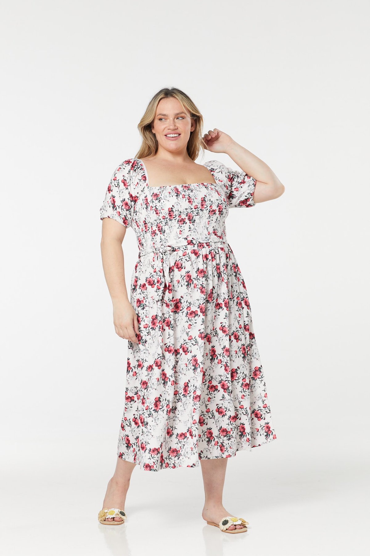 Step into the timeless charm of the Grace Dress, a true feline-inspired marvel that effortlessly combines vintage allure with modern flair. Its delicate floral print on crisp ivory fabric, paired with oh-so-chic short sleeves (perfect for showing a little shoulder), makes this dress purrfect for turning heads. The smock bodice offers a flattering fit, while the detachable tie belt cinches your waist with a whisper of elegance. Flowy and feminine, this swing skirt invites you to twirl your way through summer soirées or garden gatherings, all while feeling as graceful as a feline on a sunny windowsill.