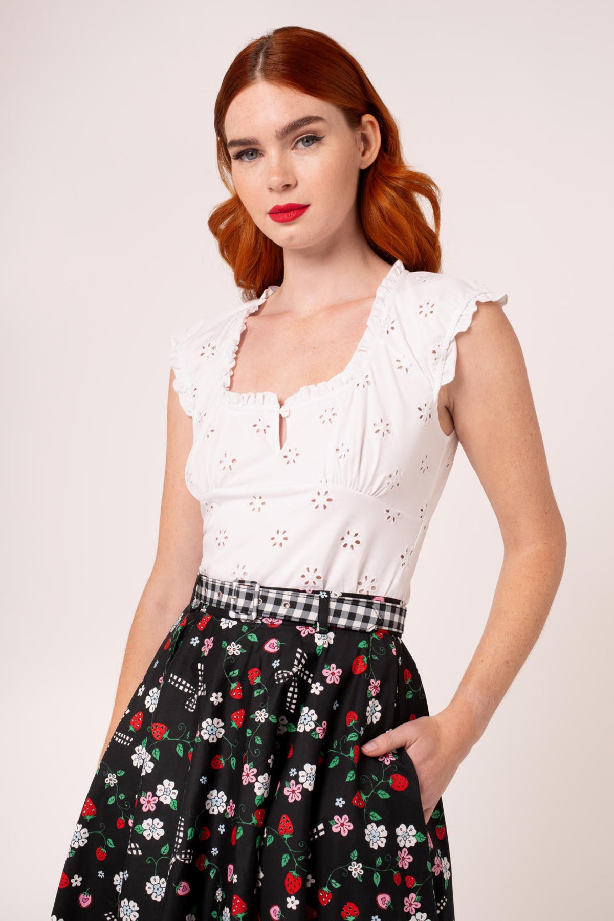 🍓Step out in style with Kitty Darling’s vintage-inspired Isobel Skirt, the crown jewel in any retro-loving fashionista’s wardrobe. Taking a nostalgic trip back to the 50s, this fashion piece effortlessly captures that era’s unrivalled charm and sass.