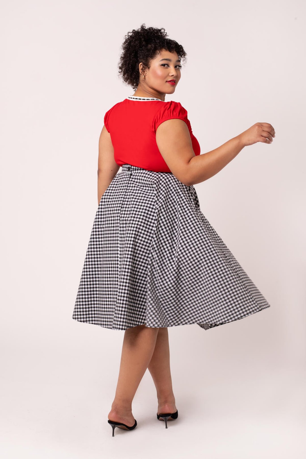 Unleash your inner vintage vixen with the Mel Skirt — a purrfect blend of retro charm and modern flair. Its classic black-and-white gingham pattern is as timeless as a cat’s curiosity, while the flattering silhouette guarantees you’ll be the cat’s whiskers wherever you go. Whether you’re channeling a bit of rockabilly rebellion or just craving that effortlessly chic vibe, this skirt is a paw-some choice to elevate your wardrobe. Crafted for comfort and style, it’s your go-to piece when you want to feel both playful and polished. From casual weekends to date nights, the Mel Skirt is ready to turn heads and make a statement that’s as bold as a feline’s stare.