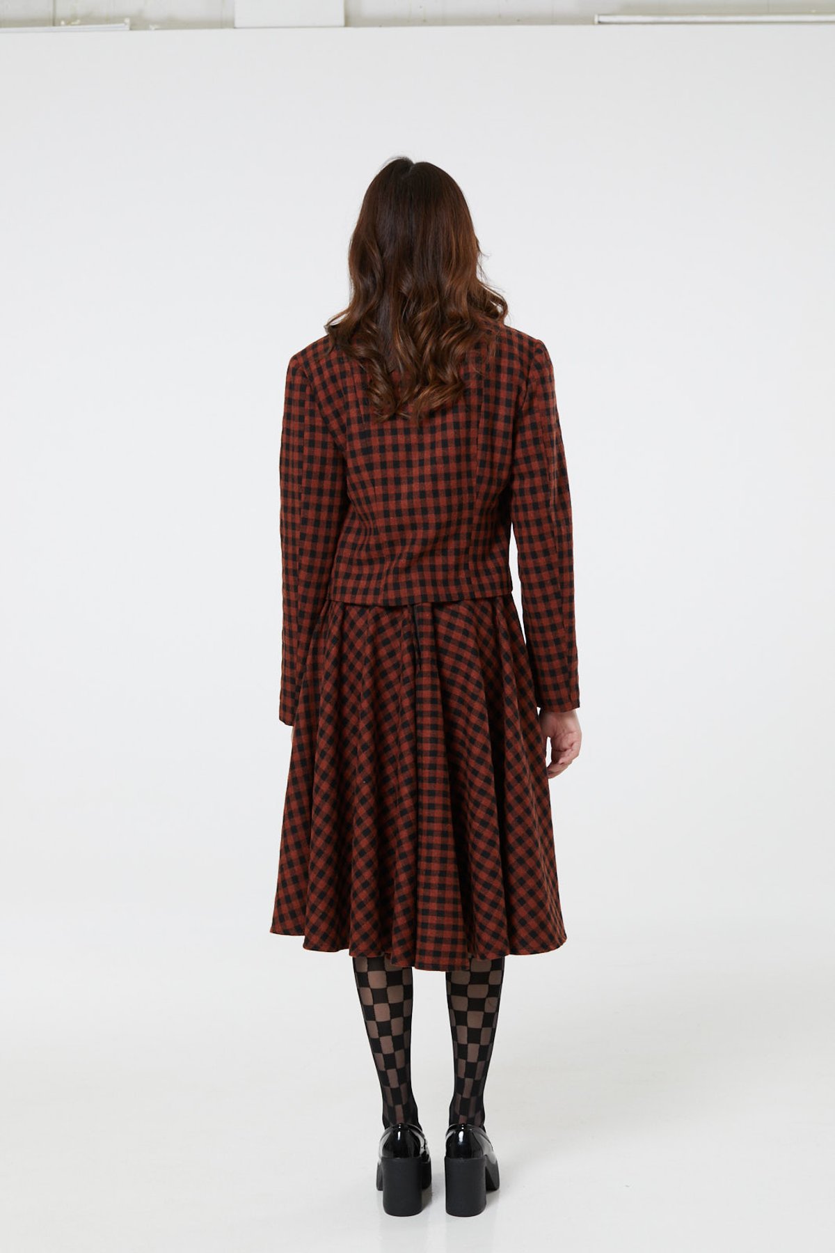 Unleash your inner vintage siren with the Sophie Skirt in its striking copper and black check pattern—an absolute purrfection for those who love a timeless, high-waisted silhouette. Crafted from luxe woollen fabric, this retro-inspired piece drapes just below the knee, giving you a classic yet utterly modern vibe. Whether you’re channeling 1950s glamour or adding a dash of playful sophistication to your wardrobe, Sophie is here to turn heads and stir admiration. Its versatile check pattern makes it a wardrobe staple, perfect for mixing and matching with your favorite pieces for a look that’s effortlessly stylish and totally claws-down gorgeous.