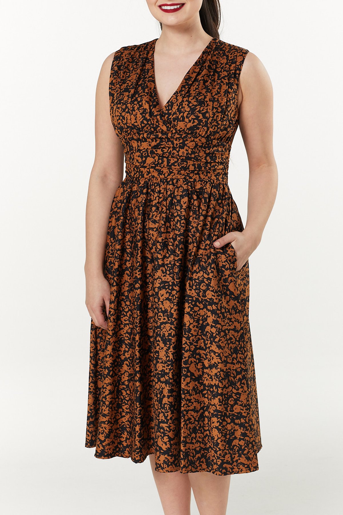 Unleash your inner vintage vixen with the Jackie Dress—where timeless charm meets a playful pop of colour. This retro-inspired tea dress drapes you in classic floral finesse, featuring a striking black and orange palette that’s as eye-catching as a feline’s midnight prowls. The flattering silhouette skims your curves with a hint of sass, while the delicate floral print adds just the right touch of feminine allure. Whether you’re twirling through a sunny afternoon or sneaking a little glamour into your evening, this dress is your purrfect partner in crime for turning heads and stealing hearts.