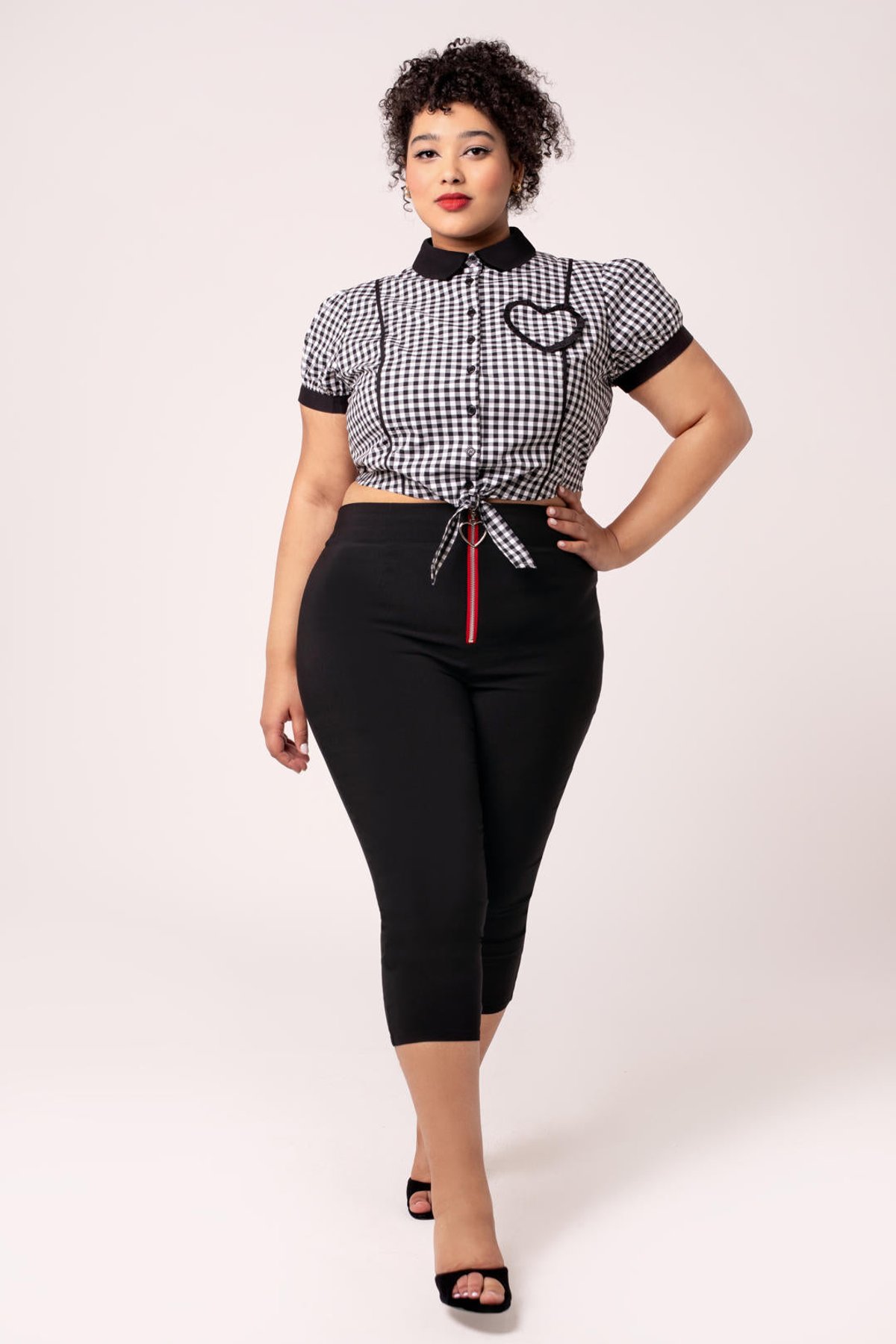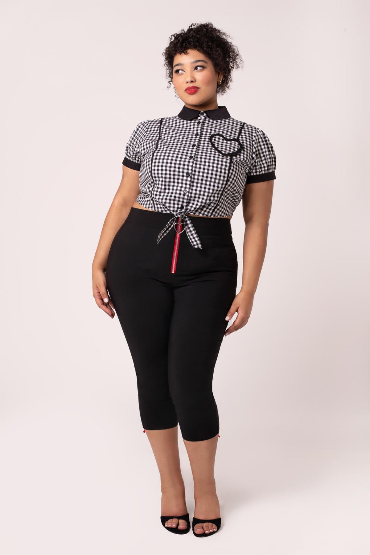 Unleash your inner vintage vixen with the Lucie Capris — where sleek, retro-inspired design meets a comfortable, modern fit. The bold black and fiery red hues are a nod to classic charm, while the tailored cut ensures you stay claws-down gorgeous from morning errands to evening adventures. These trousers are a subtle play on nostalgia, offering just enough sass to make a statement without saying a word. Whether you're embracing a laid-back brunch look or turning heads at a night out, these capris are your purrfect partner in crime.