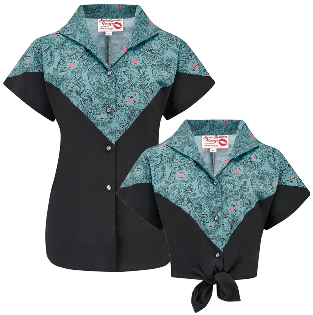 🌺 Meet the Vintage Maisy Melody Blouse; your ticket to sassy chic with a fun 50’s twist. Dance between classic elegance and playful charm with this unique piece, boasting a delightful black & teal floral print. 👗