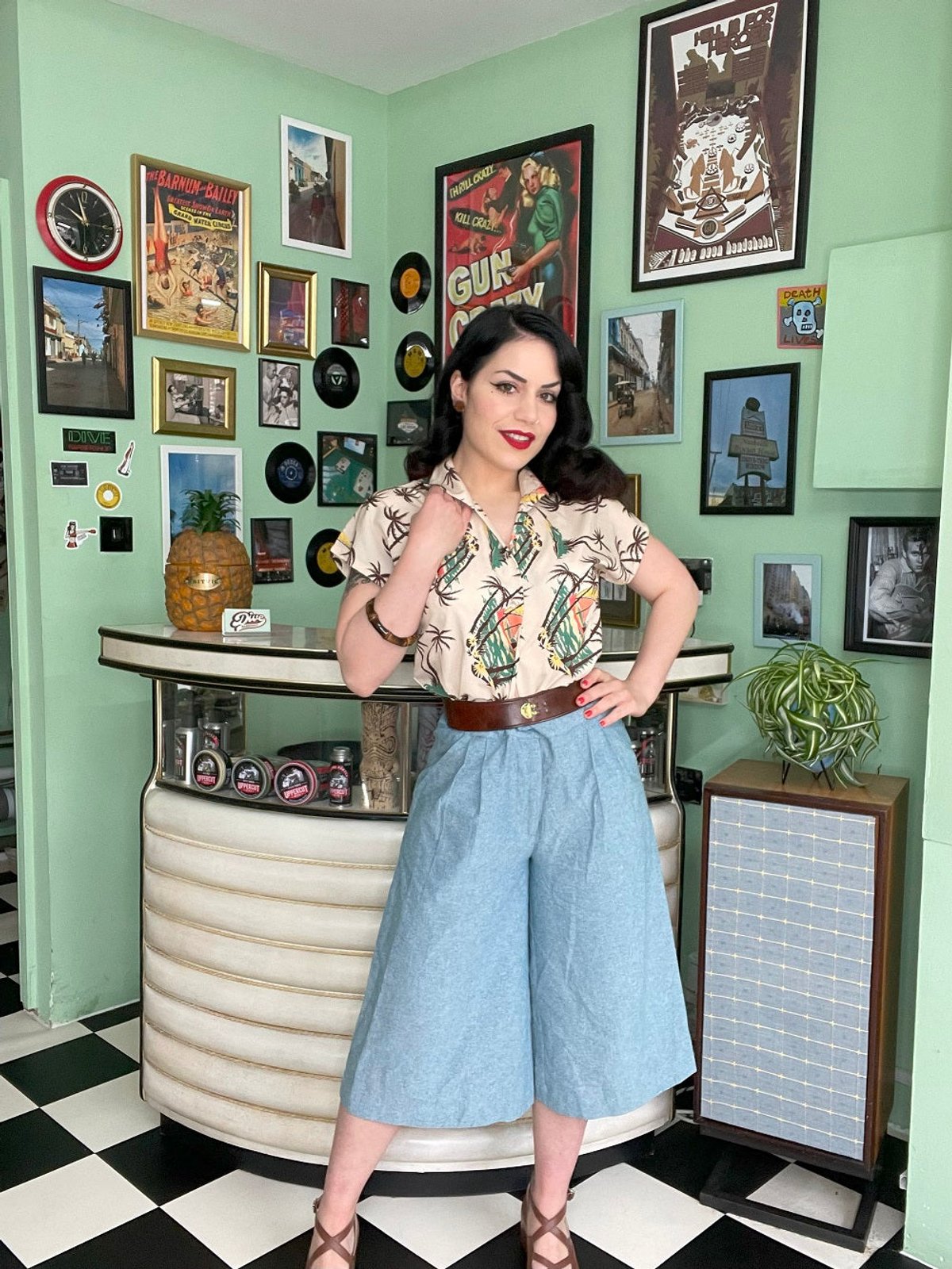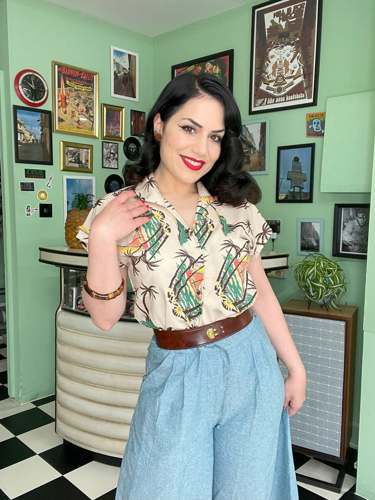 This lovely piece is perfect for everything from sunny brunches to vintage-themed nights out. Pair it with your favourite high-waisted jeans for a relaxed yet retro look or team it with a chic skirt for that pin-up flair. It’s a style chameleon that invites you to mix and match to your heart’s content.