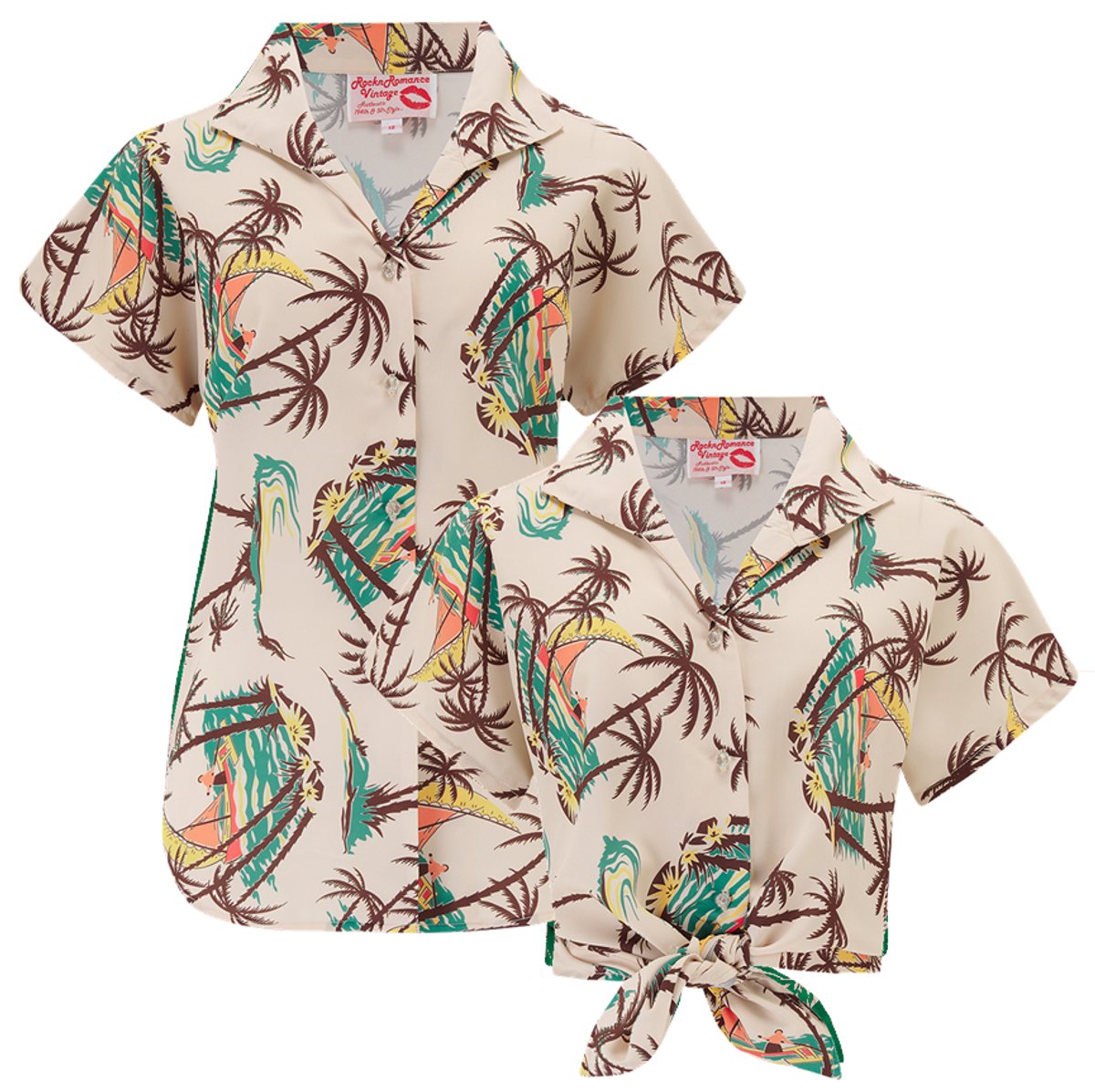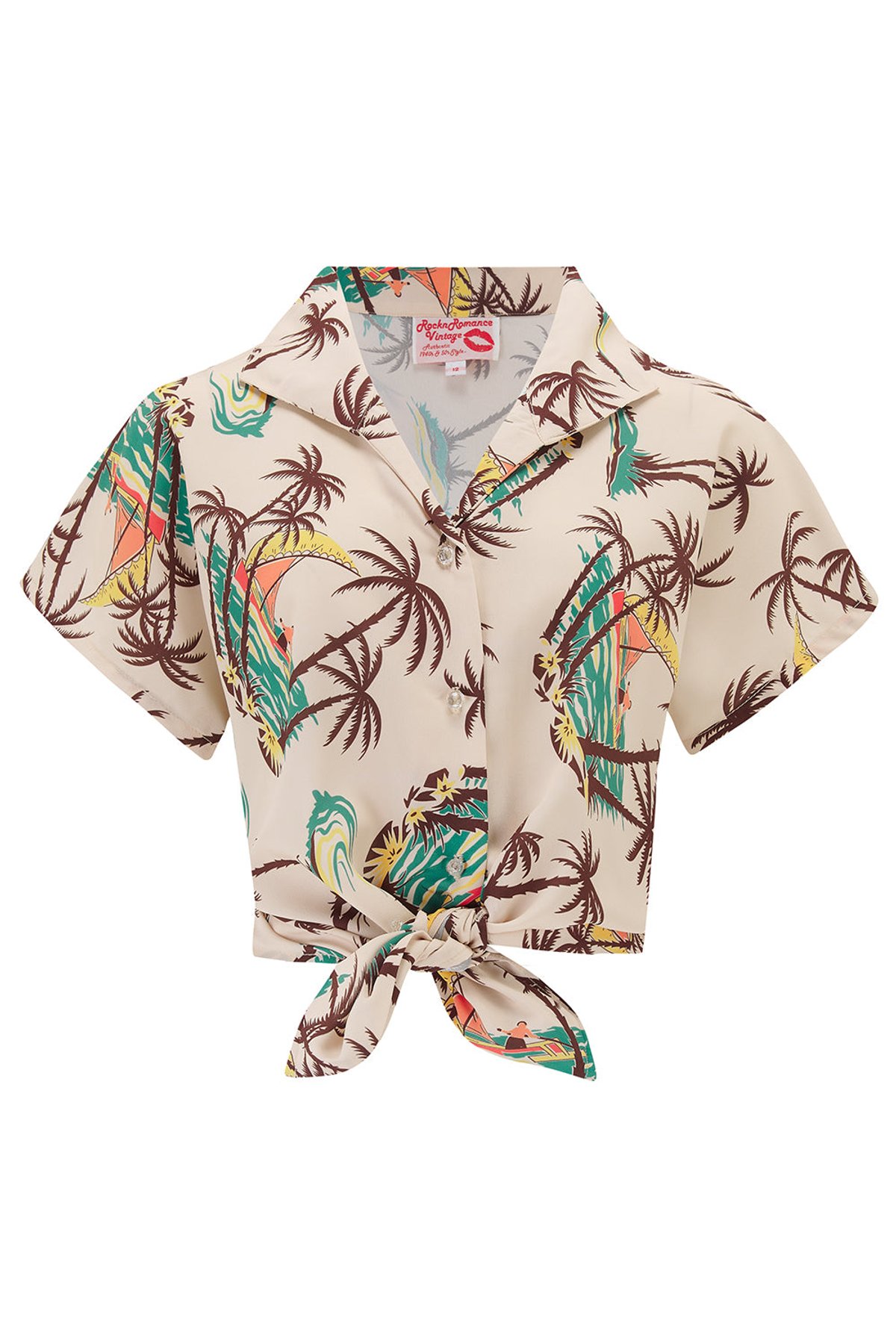 Add a splash of vintage allure to your wardrobe with the Maria Blouse in Tahiti print—your new go-to for a hint of retro chic. Its tropical pattern in cream and brown is a subtle yet striking nod to the fabulous 1940s and 50s. From its charming crystallite buttons to those adorable capped sleeves, every detail is designed to make you look claws-down gorgeous. Whether you prefer to tuck it in for a polished look or tie it up for a playful vibe, this blouse is as versatile as it is stylish. Crafted from soft, drapey Poly Crepe, it feels as good as it looks—and a simple 30-degree wash keeps it fresh and ready for your next outing.