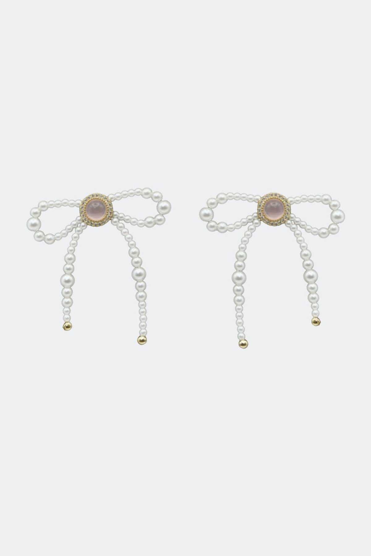 Unleash a touch of vintage charm with these purrfect Pearl Bow Drop Earrings. Crafted with faux-pearl beads, delicate diamante accents, and a sprinkle of pink gem detail, they strike just the right balance between timeless elegance and modern allure. At 4cm long, they’re a subtle statement-maker that adds a dash of sophistication to any look—whether you're feeling a little retro glam or a sleek, contemporary vibe. Their gold hues catch the light with every turn, ensuring all eyes are on you without going overboard. Designed with a comfy stud fastening, these earrings are as easy to wear as they are enchanting—perfect for adding a refined flourish to your day or evening ensembles.