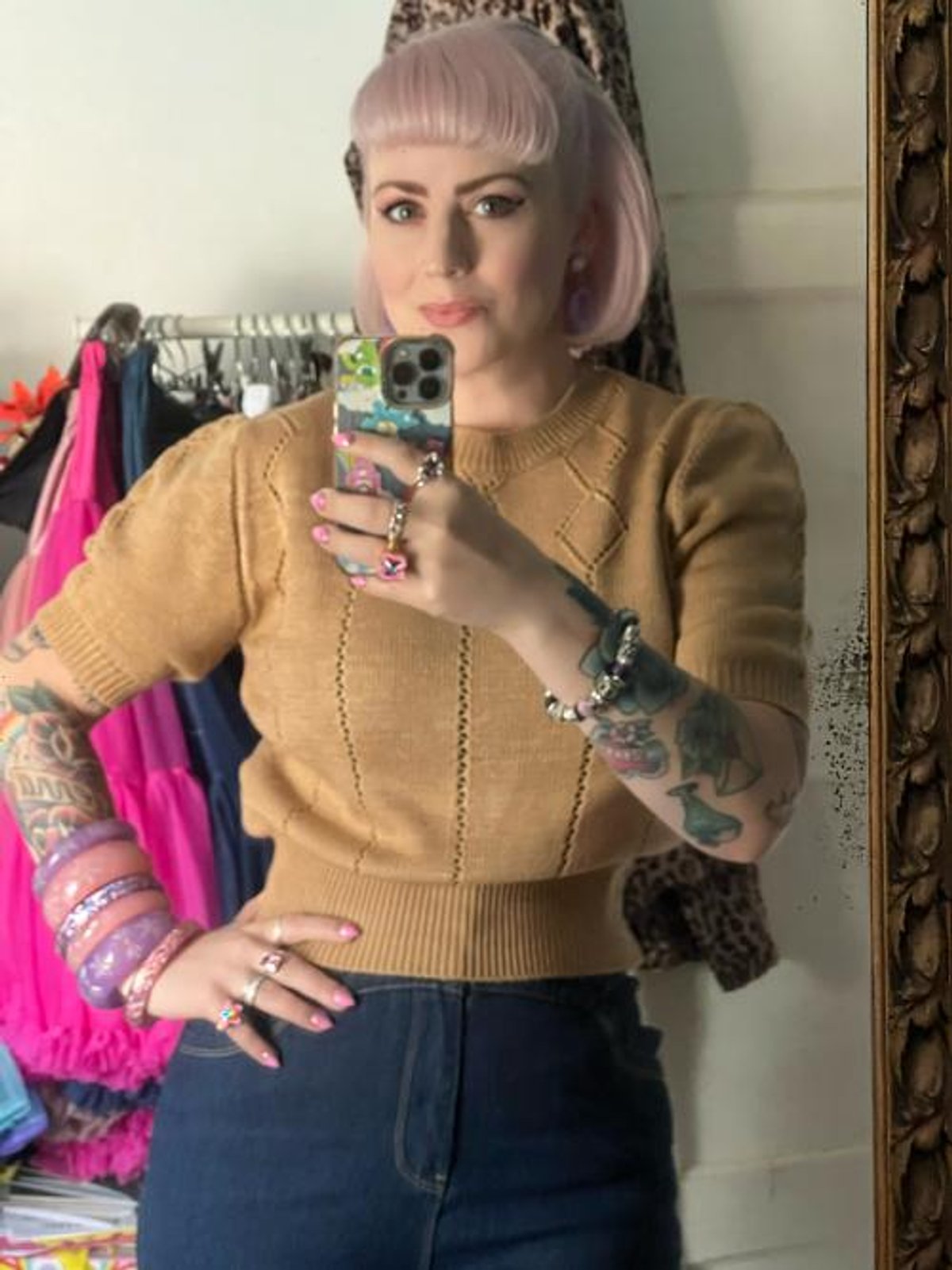Available now at Kitty Darling, the UK’s go-to retro boutique, this stunning jumper is waiting to be yours. We take pride in providing timeless pieces that encapsulate the essence of vintage fashion. Don’t miss out on adding this biscuit beauty to your collection – the perfect blend of comfort and style for all seasons. Shop now and wear it your way! 🛍😍👗