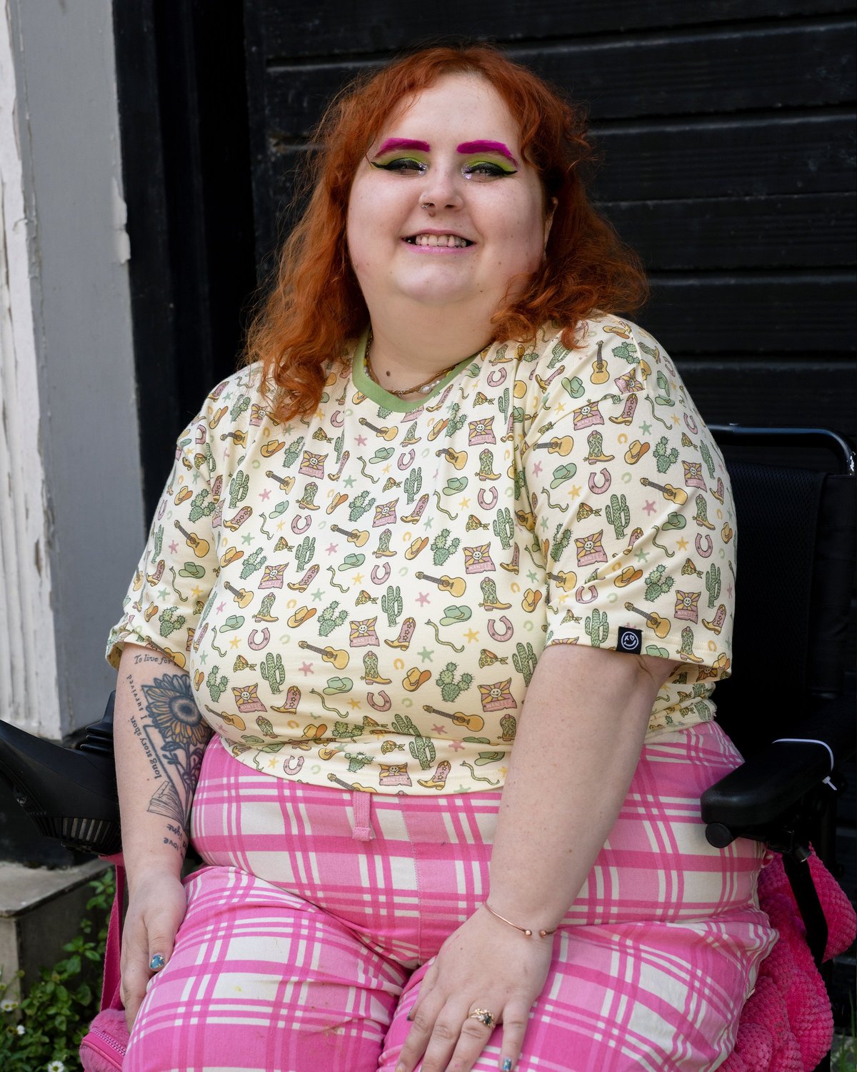 This playful piece is ideal for casual days out, weekend festivals, or even a stylish brunch with friends. Its fun western-inspired print adds just enough edge to turn everyday moments into a fashion statement. Whether you’re strolling through city streets or lounging with a latte, the Yasmin Cousins tee ensures you look effortlessly cute and confidently cool.